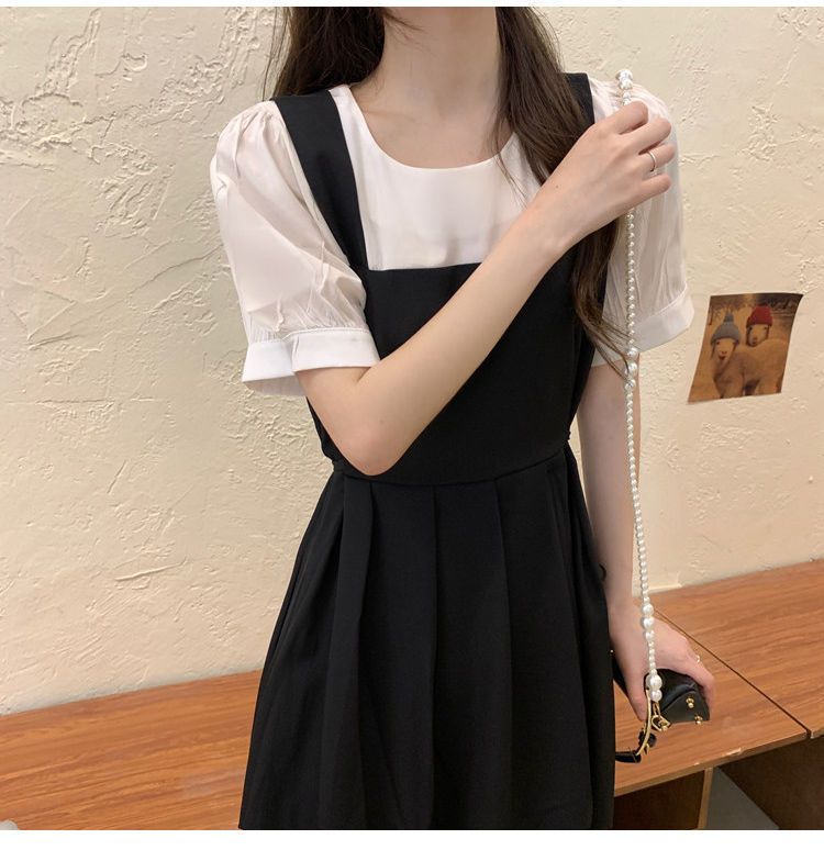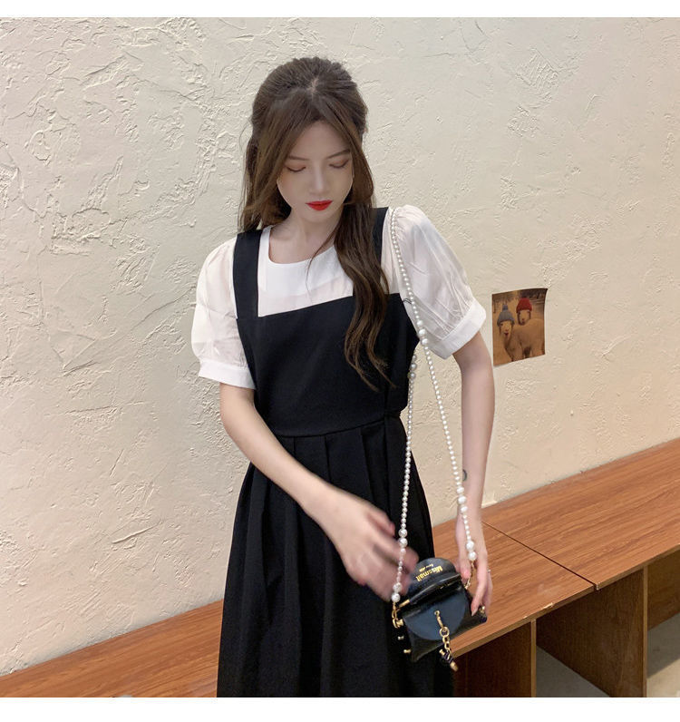 블랙 원피스 여자 여름 바느질 가짜 투피스 하이 엔드 원피스 프렌치 레트로 작은 검은 색 원피스 스트랜드 원피스 긴 원피스