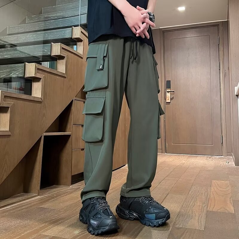 트렌디 한 브랜드 멀티 포켓 크레인 바지 미국 스타일 남성 스트레이트 바지 여름 얇은 느슨한 넓은 다리 캐주얼 바지스토어 가기