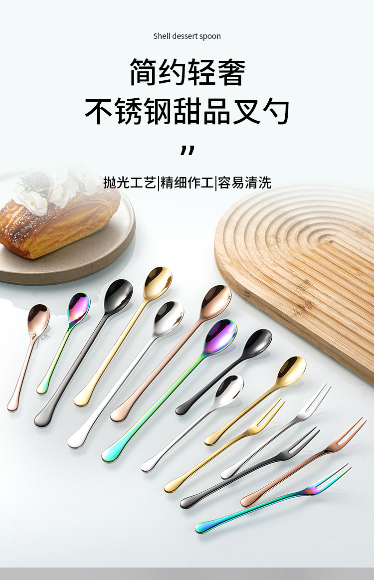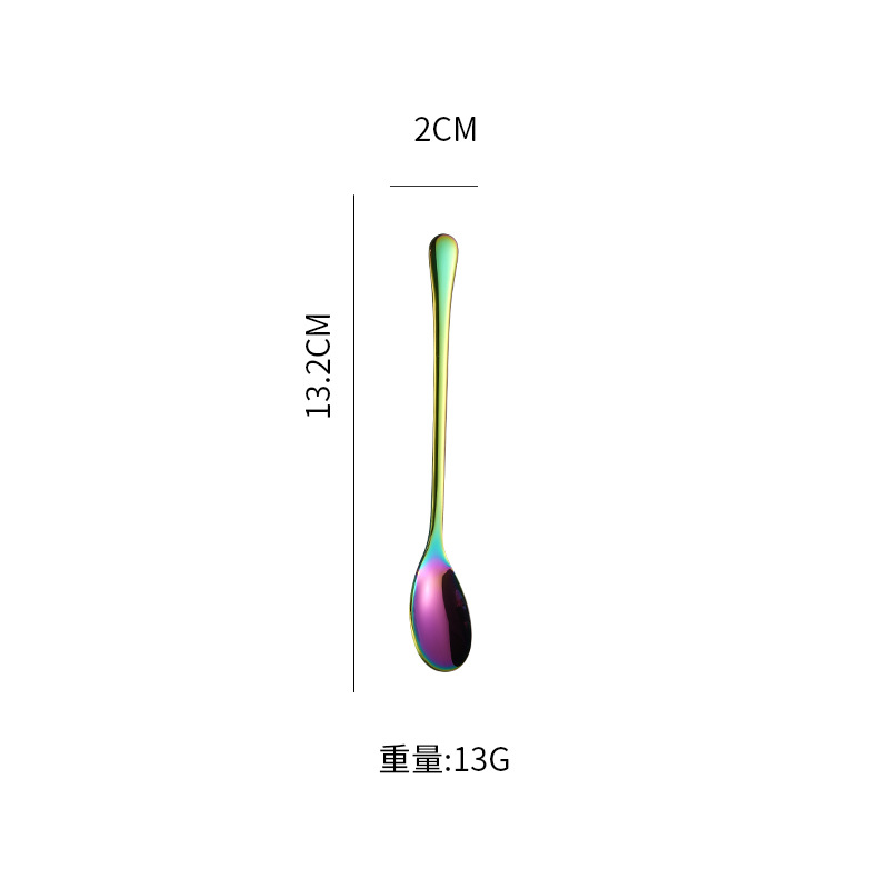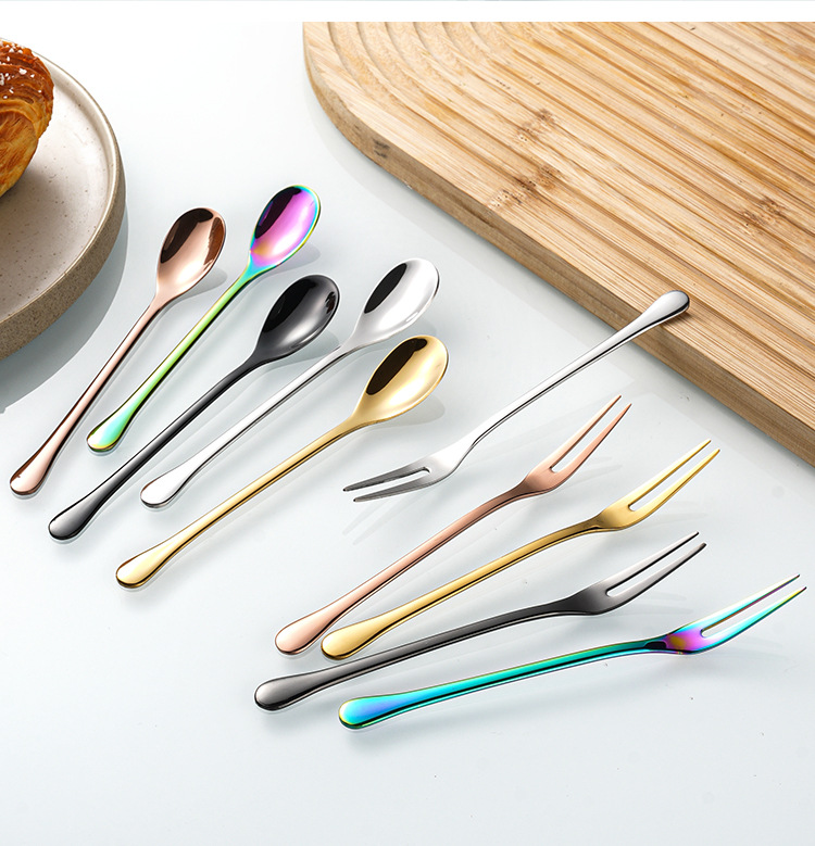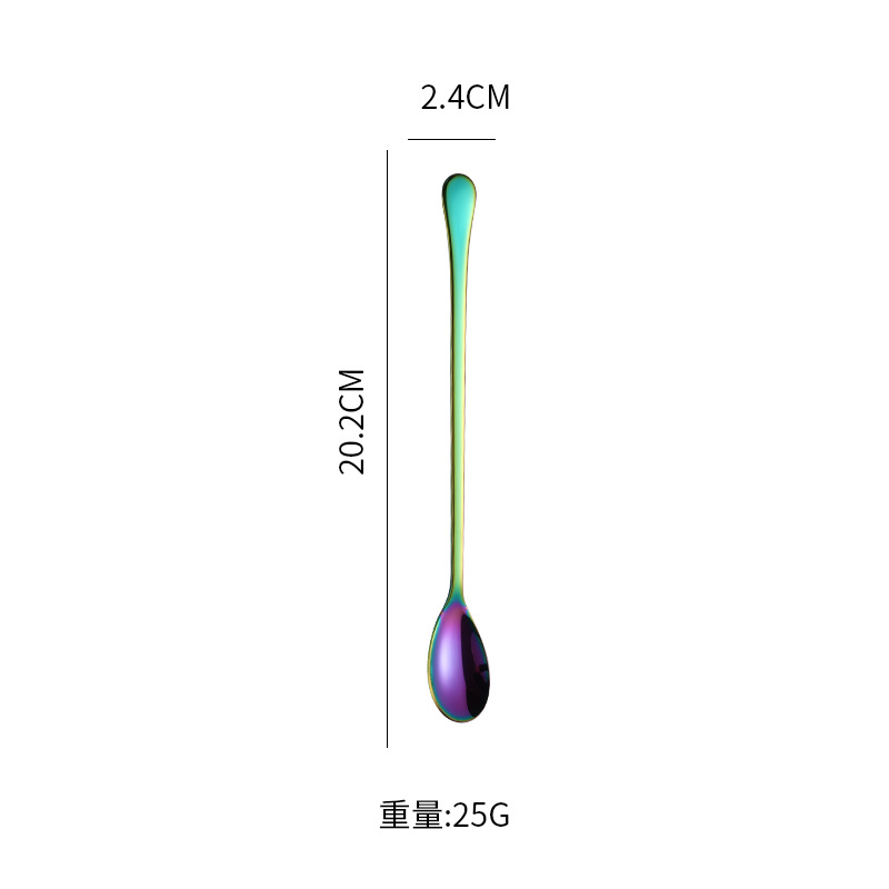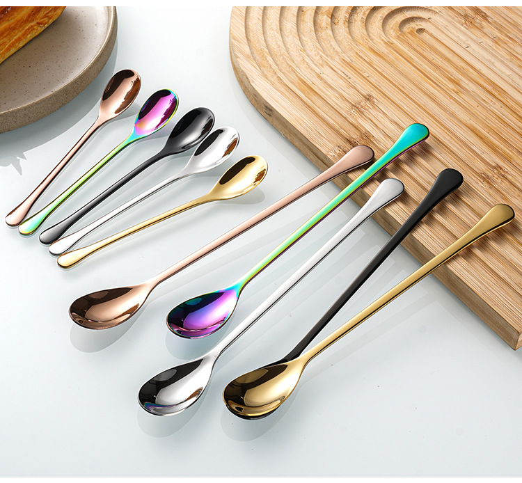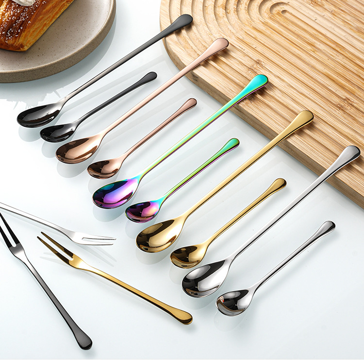 304 스테인레스 스틸 스푼 긴 핸들 아이스 스푼 높은 색상 가치 디저트 커피 스푼 꿀 혼합 숟가락 과일 포크 도매
