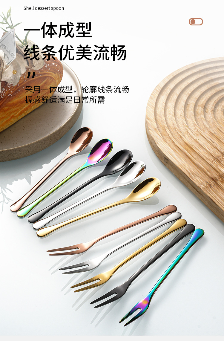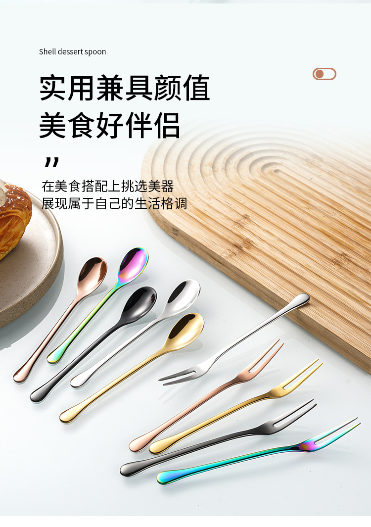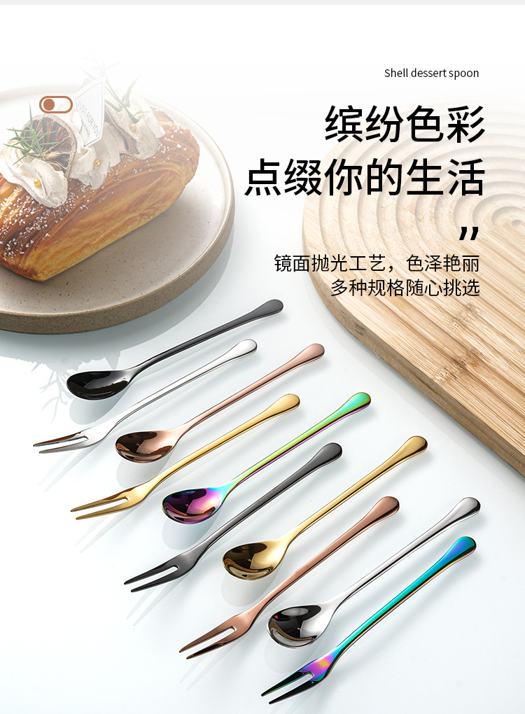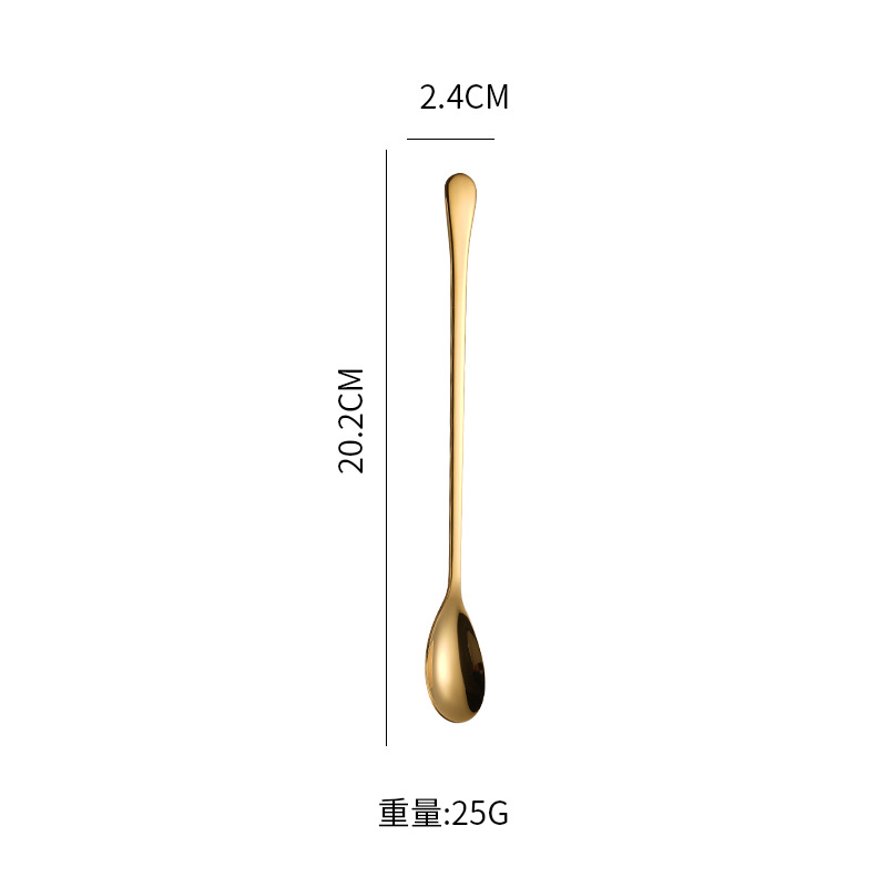 304 스테인레스 스틸 스푼 긴 핸들 아이스 스푼 높은 색상 가치 디저트 커피 스푼 꿀 혼합 숟가락 과일 포크 도매