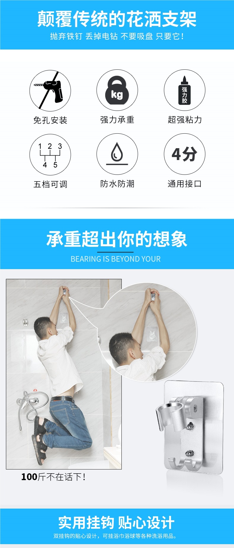 샤워 브래킷 비 천공 고정베이스 교수형 흡입 컵 샤워 액세서리 샤워 헤드 호스 욕실