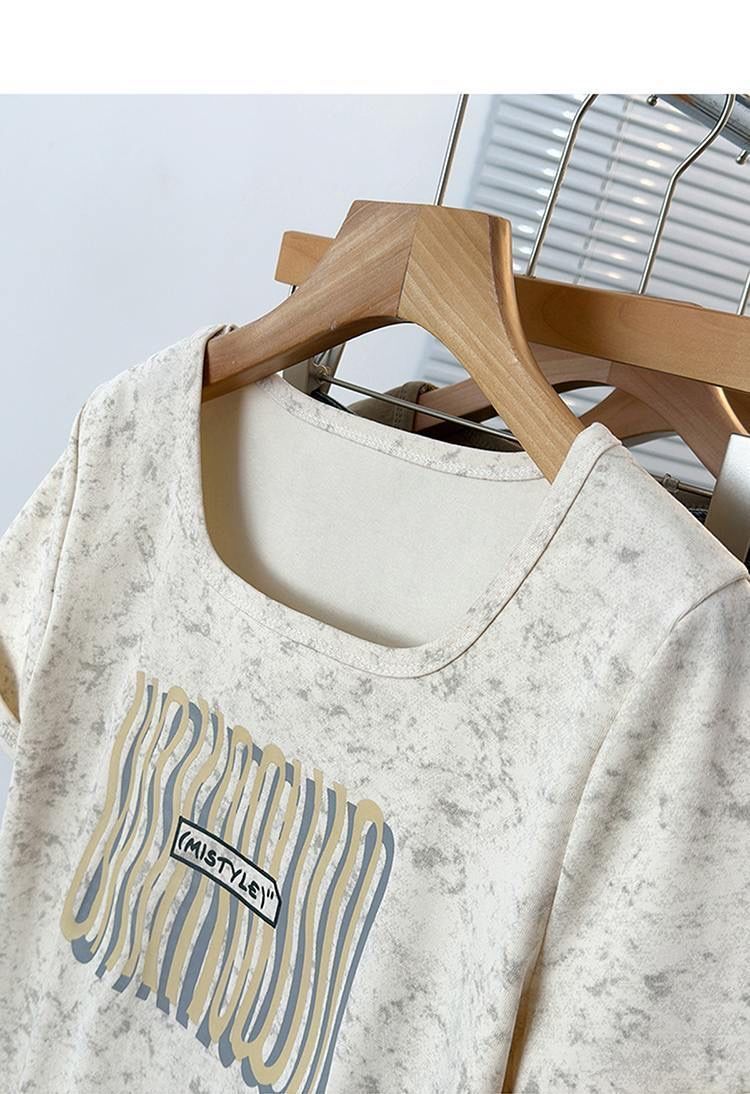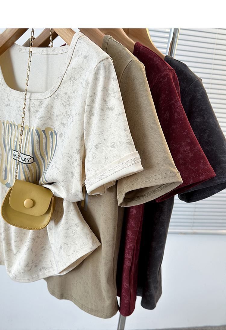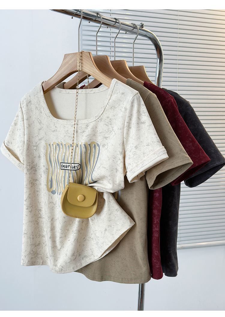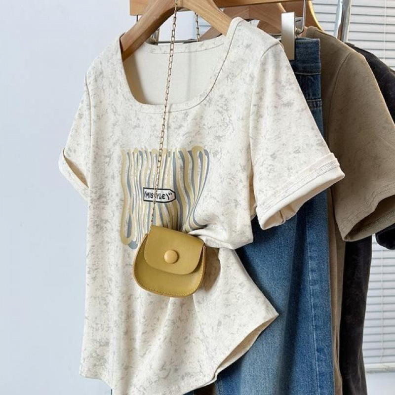 플러스 사이즈 스퀘어 입 목 반팔 셔츠 여성 2025 년 여름 새 어깨 어깨 그늘 고기 슬리밍 느슨한 올매치 아우터 탑