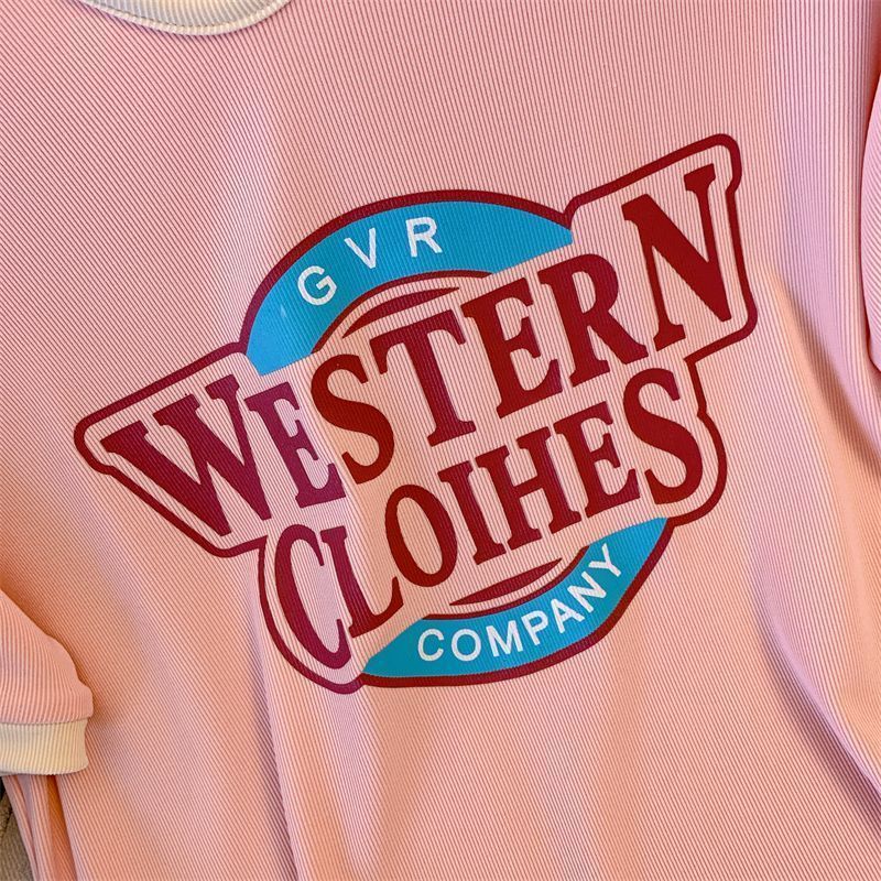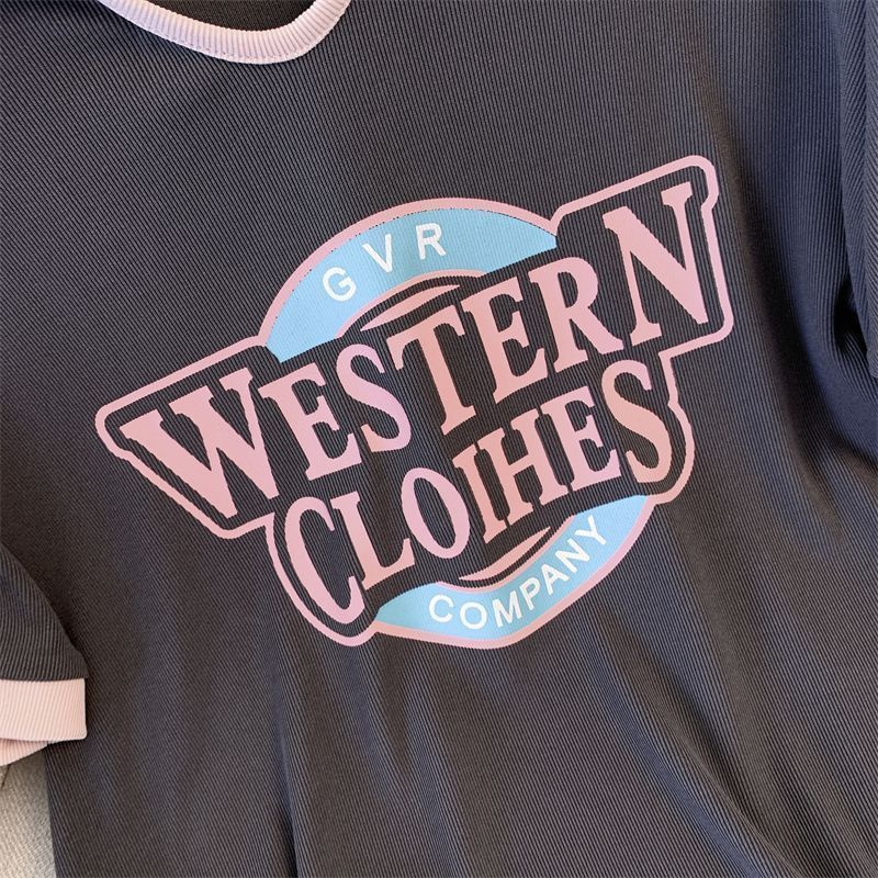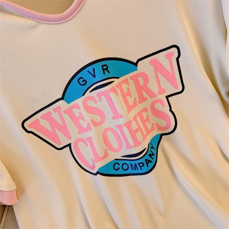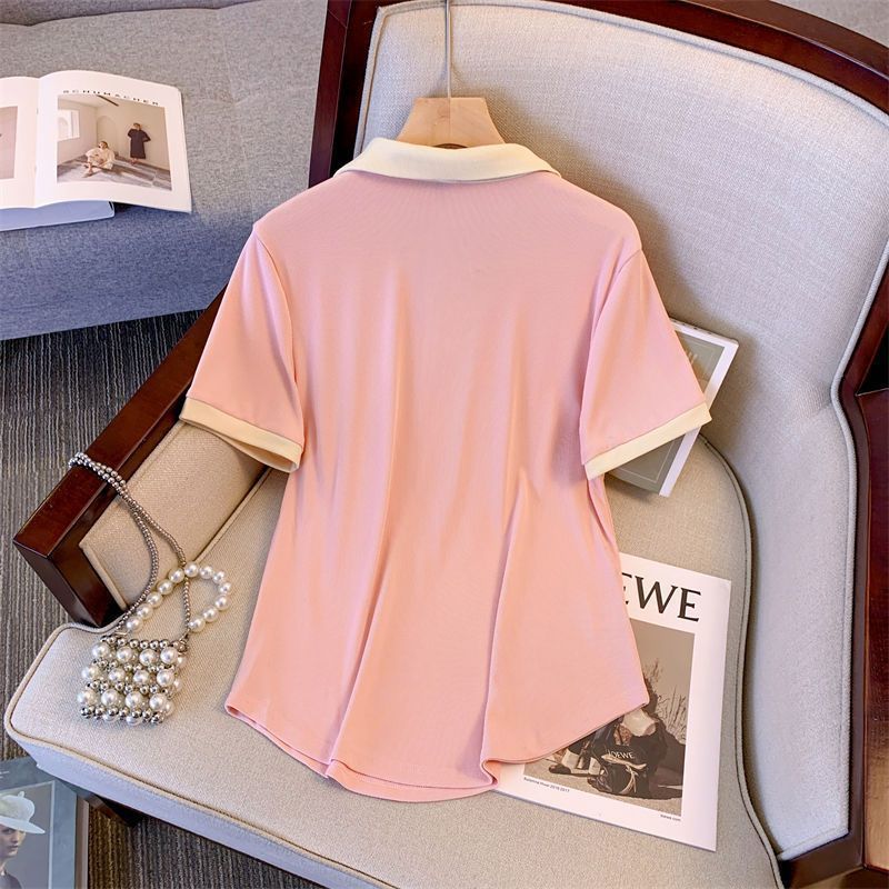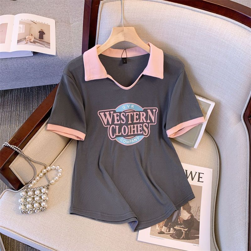 미국식 칼라 숄더 반팔 셔츠 여성 여름용 빅사이즈 루즈핏 슬림 패션 프린트 젊어보이는 상의 패션 다용도스토어 가기