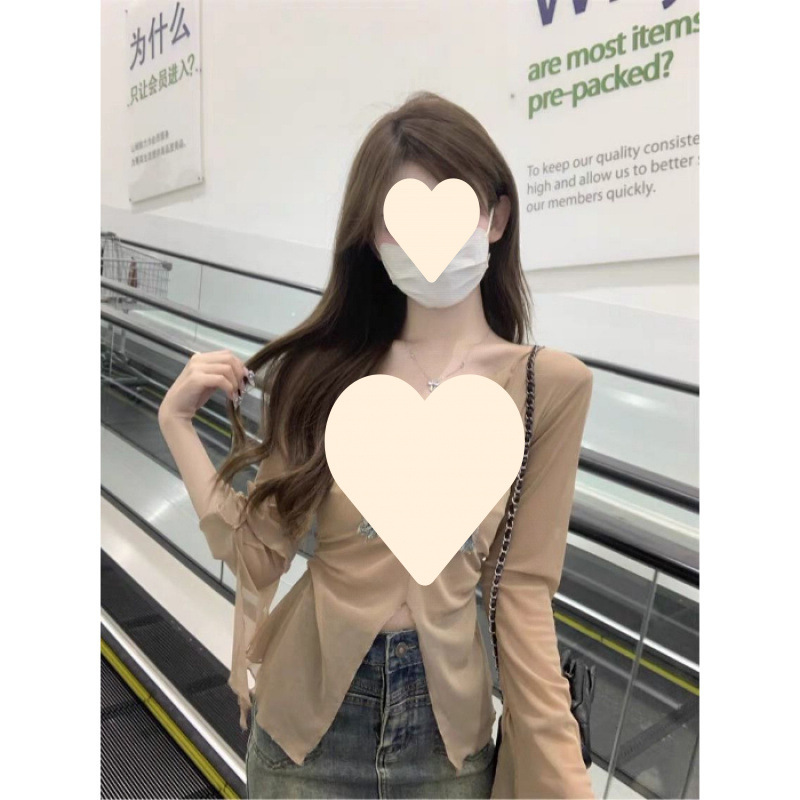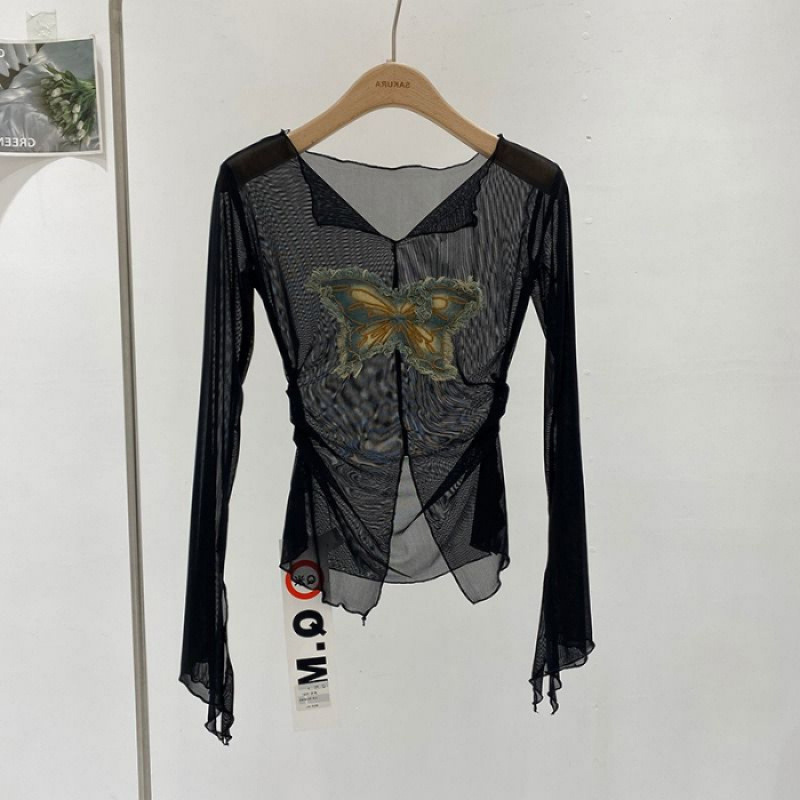 프랑스 나비 뜨거운 소녀 분할 선 스크린 긴팔 티셔츠 여성의 봄 2025 새로운 허리 슬리밍 블라우스 탑 Ins