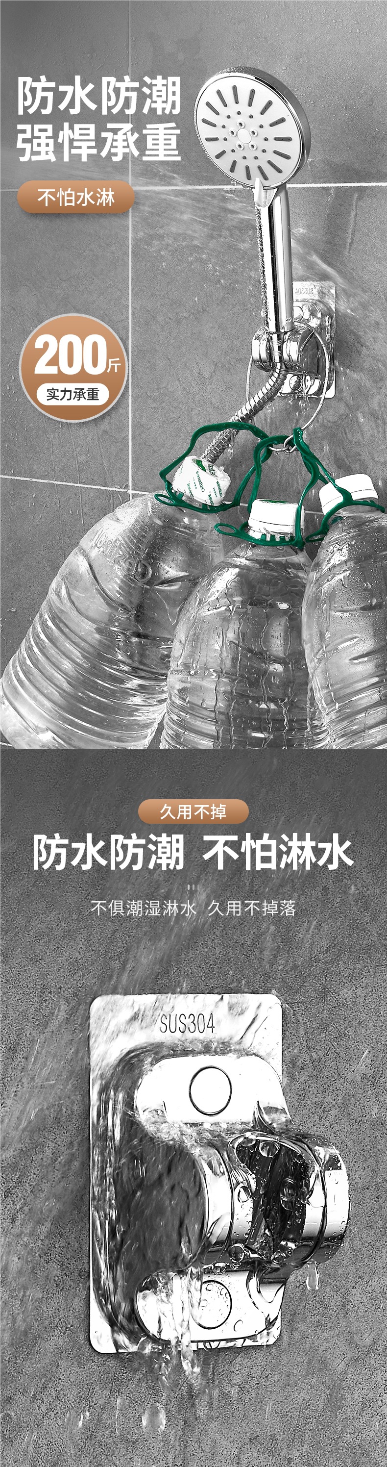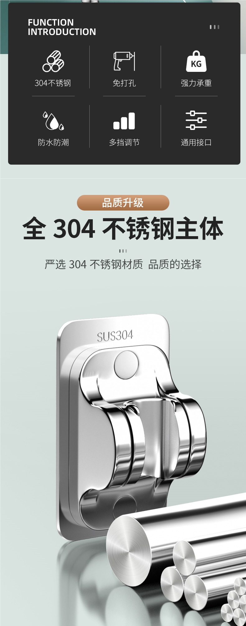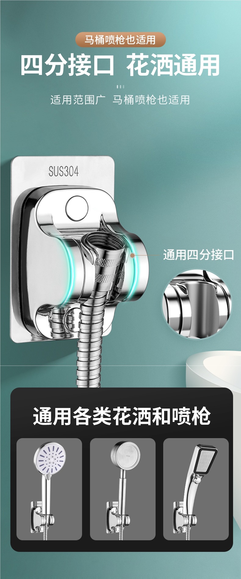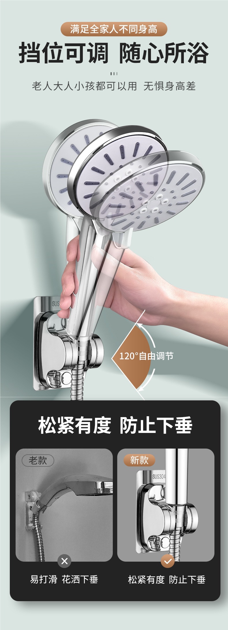 스테인레스 스틸 비 천공 샤워 브래킷 조정 강화 기본 욕실 샤워 헤드 홀더 걸이