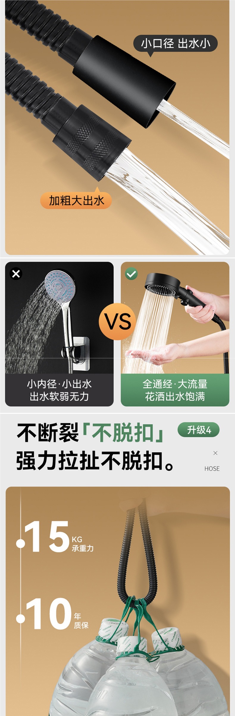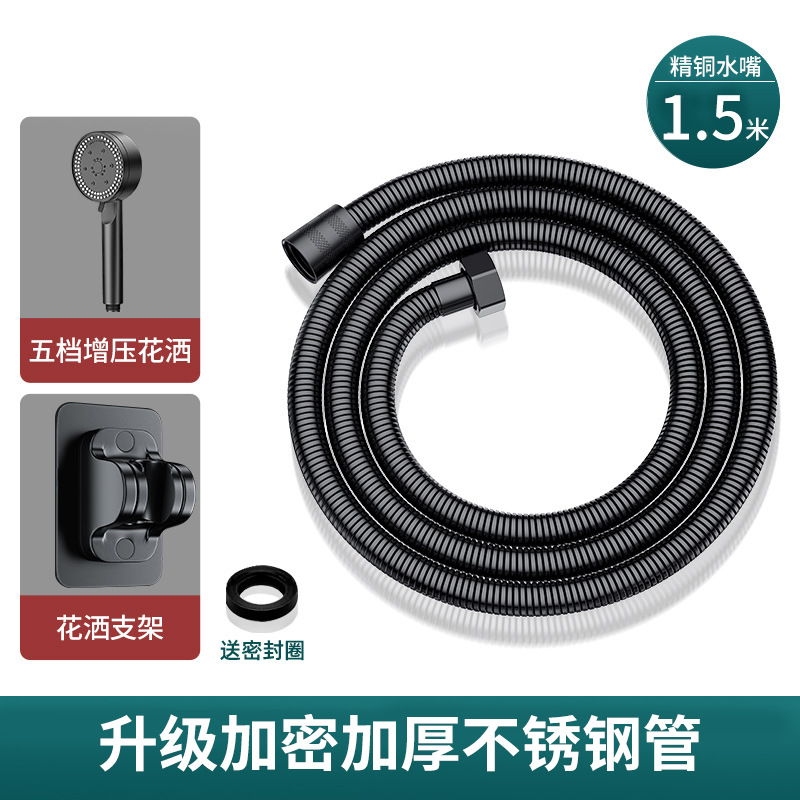 • [3종 세트] 블랙 1.5m + 프리 샤워홀 브라켓 + 다단 슈퍼차저 샤워 - 10년 보증 - 낡으면 새것으로 교환