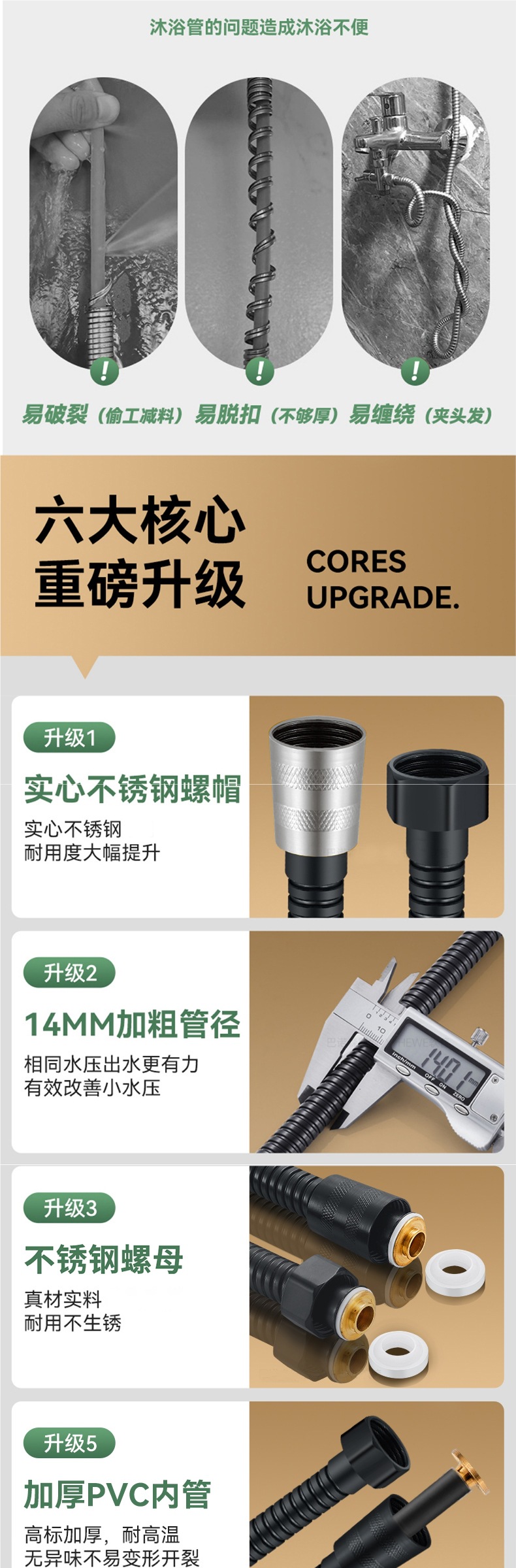 • [브라이트 실버 리얼 구리 헤드 2.0m ] 두꺼워진 방폭 스테인레스 스틸 - 20년 보증 - 낡으면 새것으로 교체
