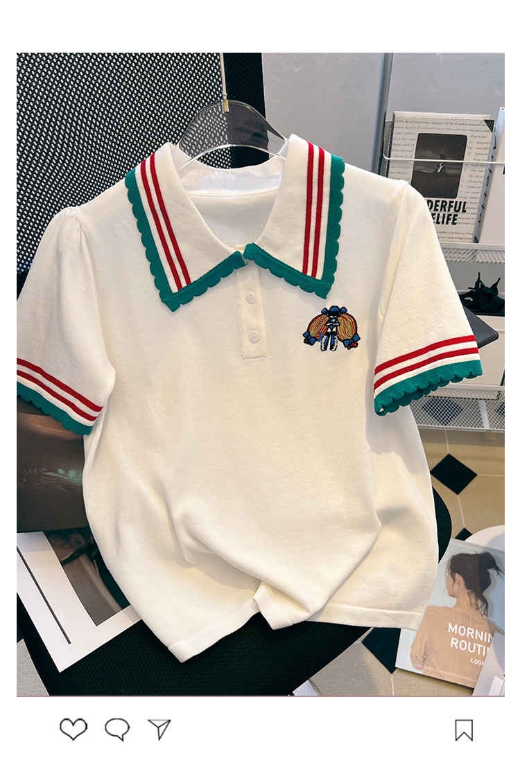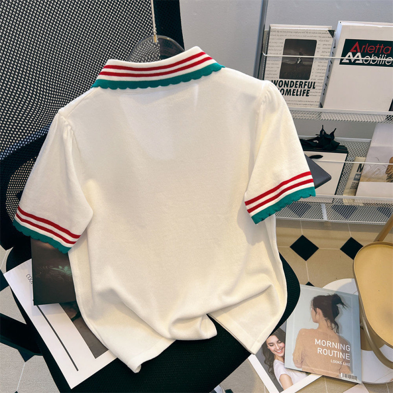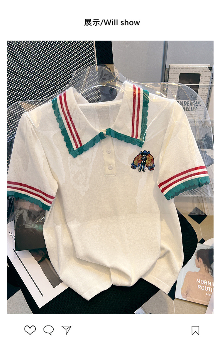 특별한 크기 300 진 외국 스타일 대비 옷깃 반팔 셔츠 여성의 여름 지방 디자인 감각 틈새 셔츠 최고 조수스토어 가기