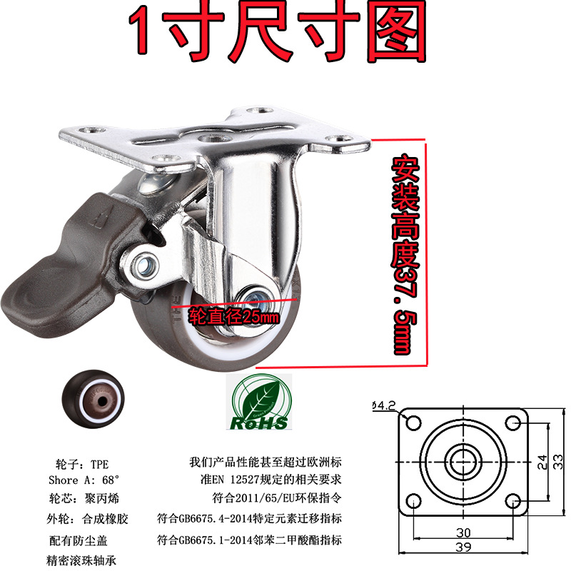 • 1.5inch 방향성 브레이크(4개 팩)(셀프 태핑 나사 + 드라이버 포함)