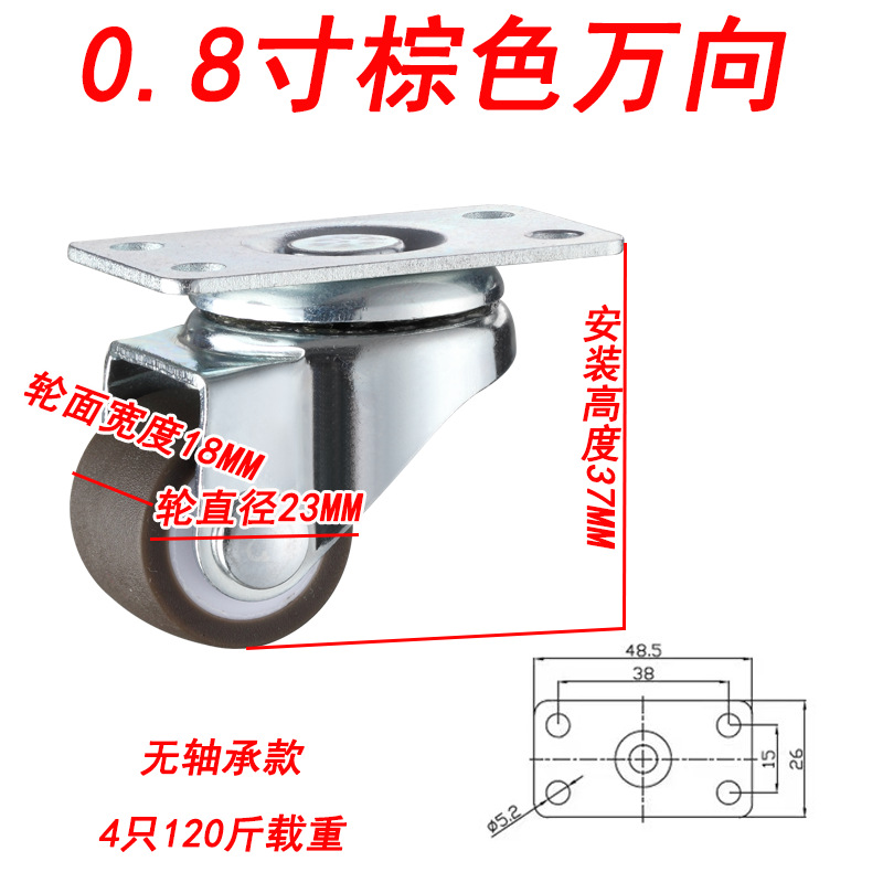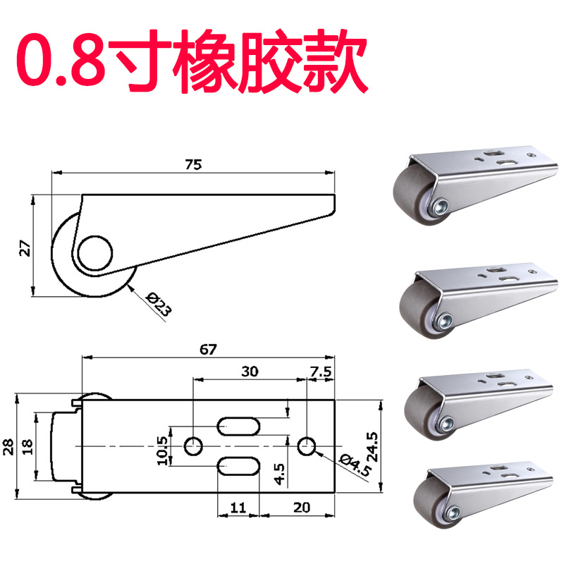 • 수직 장착 휠 0.8inch 갈색 고무 유형(4개)