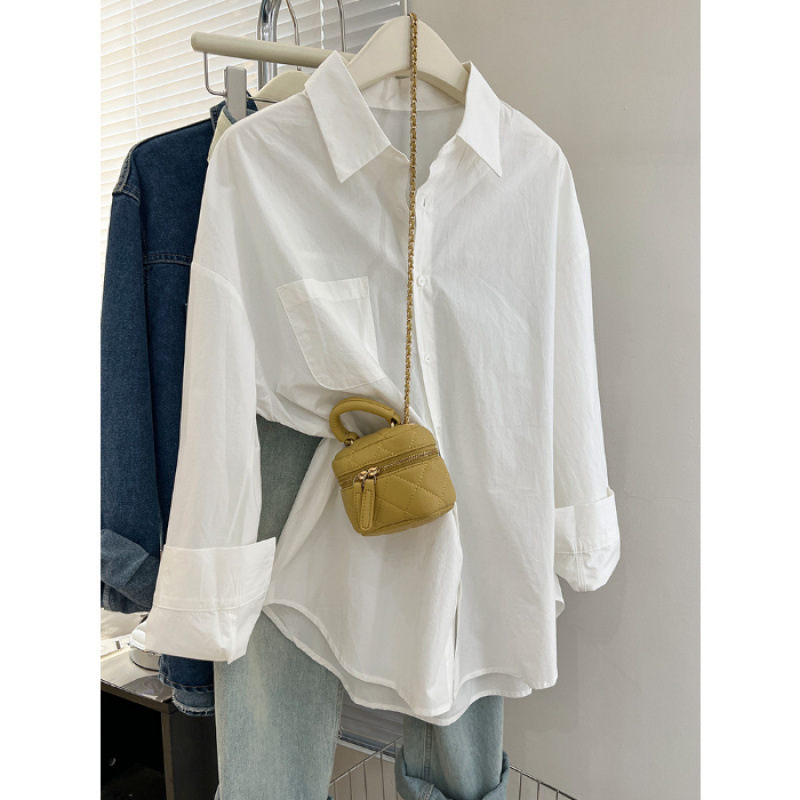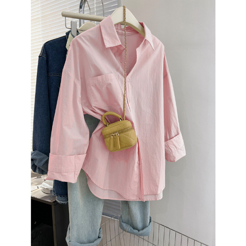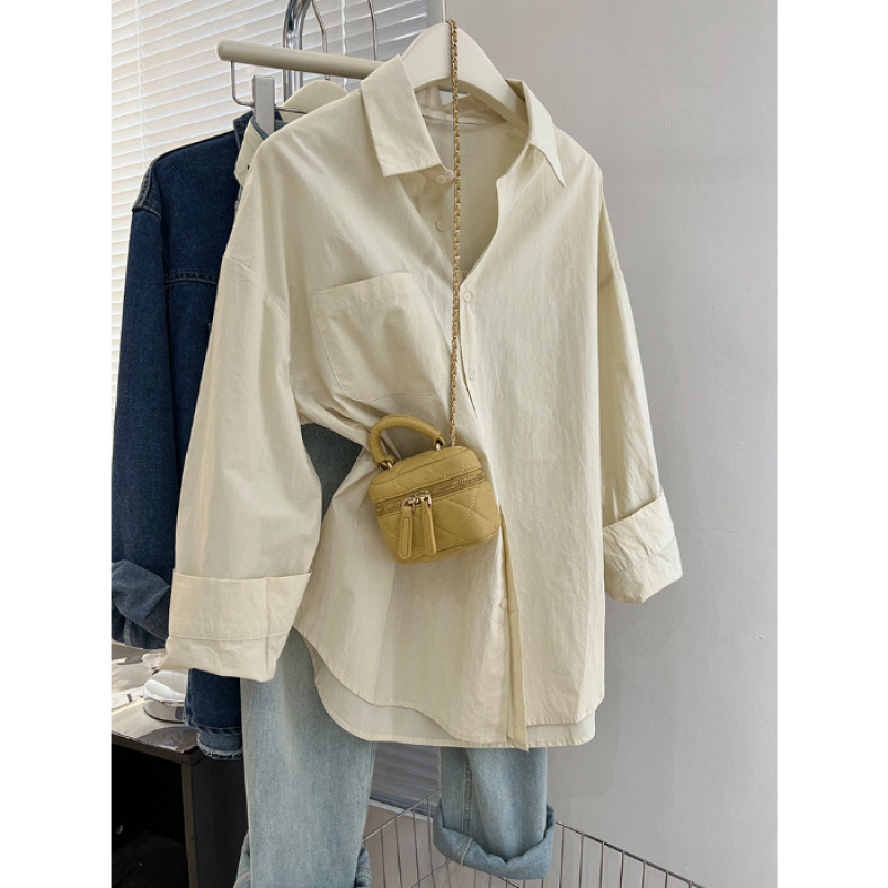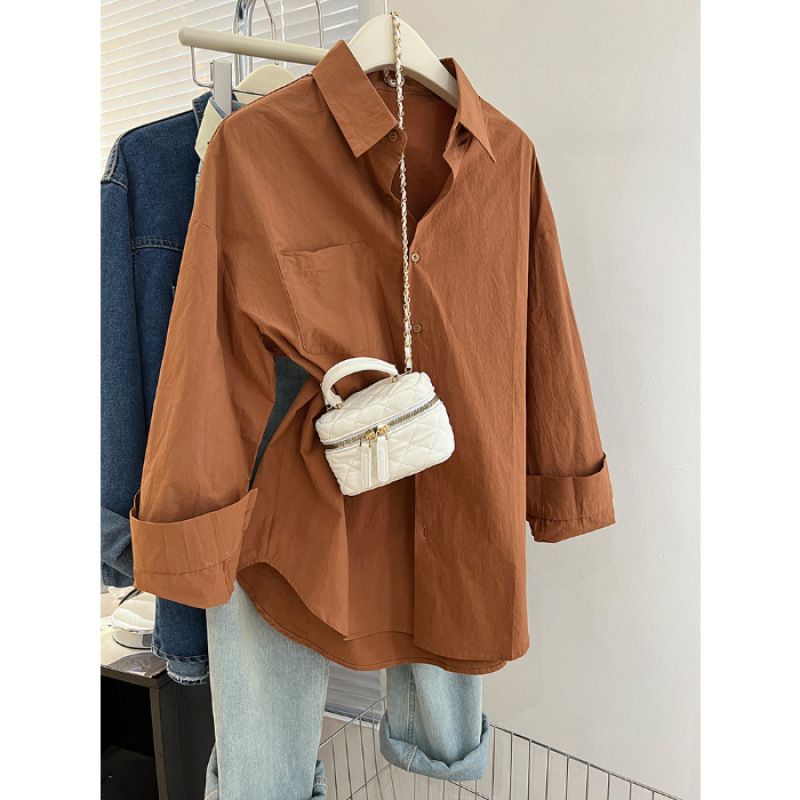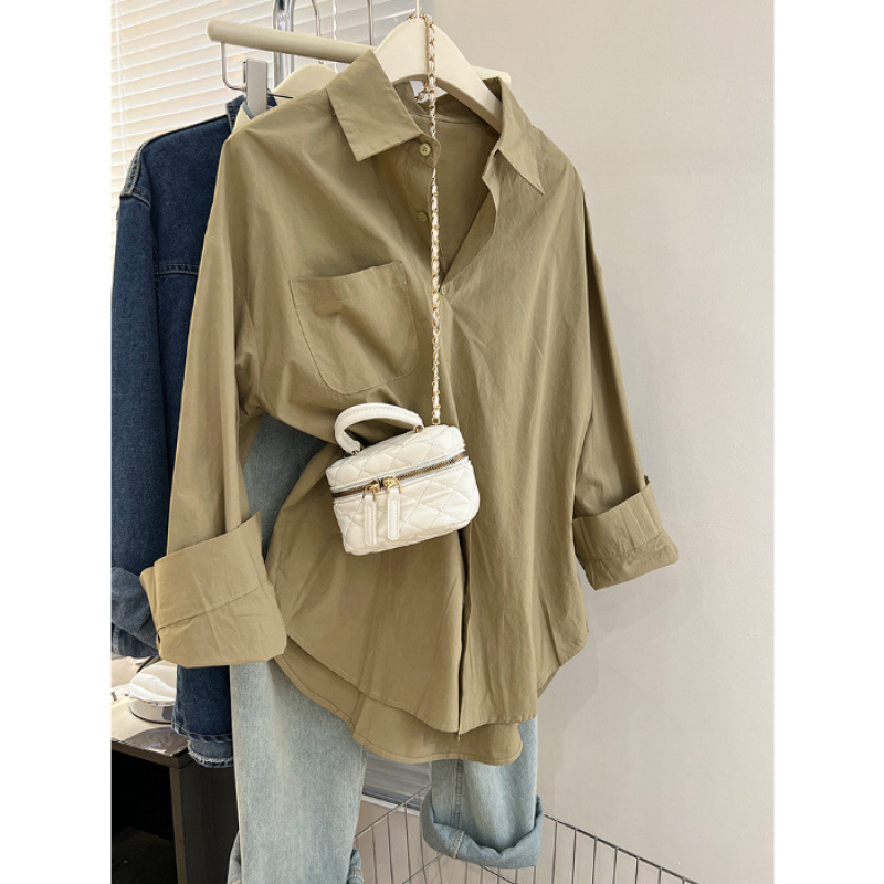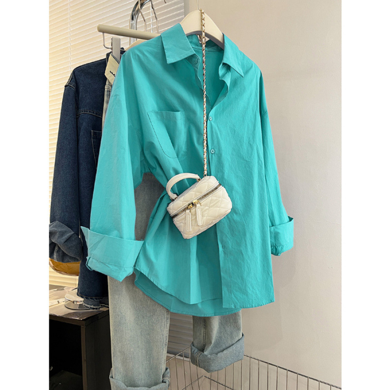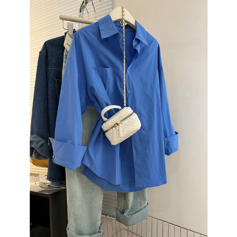 2025 라이트 블루 셔츠 내부 스택 여성 가을 및 겨울 느슨한 올 매치 슬리밍 숄더 셔츠웨어 아웃 트렌디