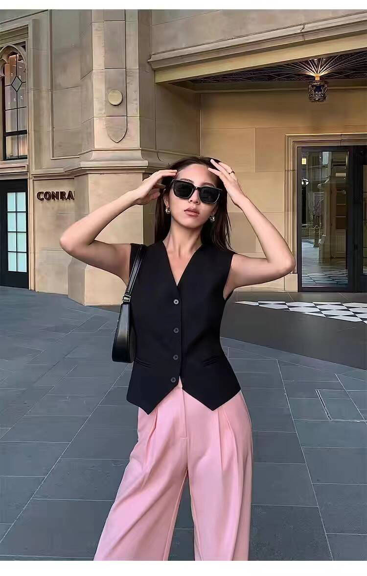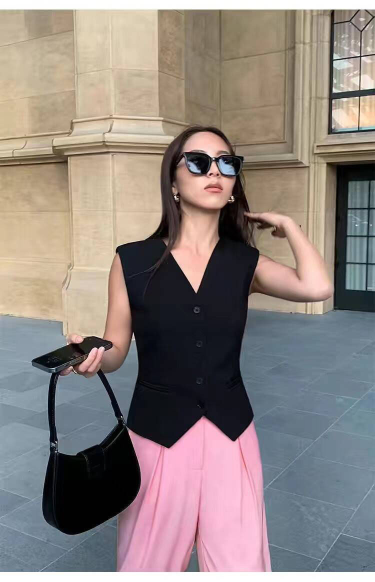 세트 조끼 여성의 작은 조끼 2025 봄과 가을 새로운 슬림 핏 외장 장식 여성용 허리 코트 보라색 짧은 조끼스토어 가기