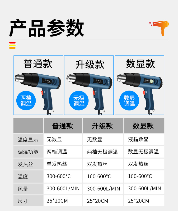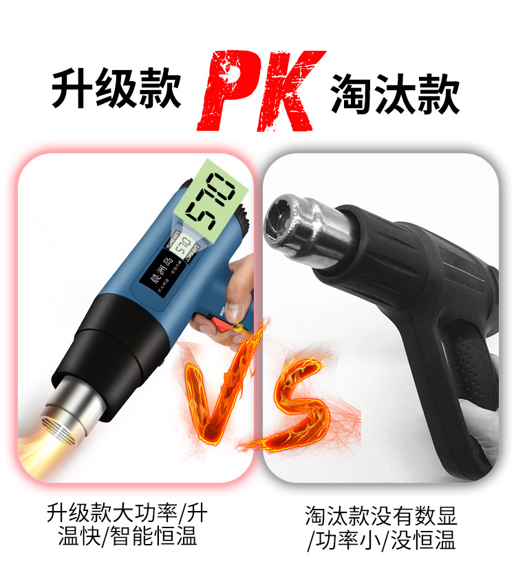 디지털 디스플레이 뜨거운 공기 총 전자 유지 보수 작은 필름 휴대용 건조 총 고출력 산업 열 수축 필름 헤어 드라이어 직접 판매