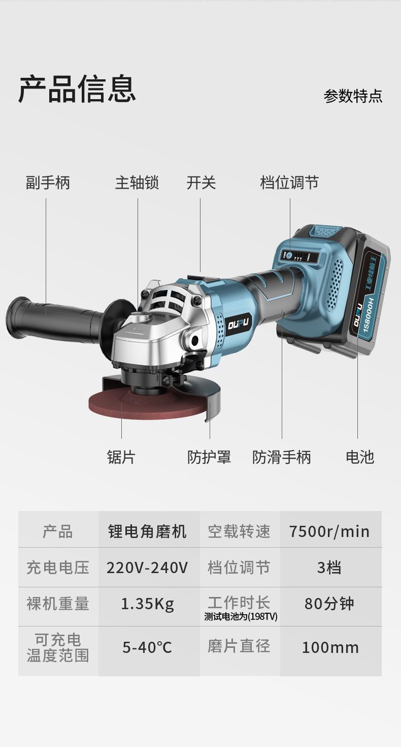 브러시리스 충전식 앵글 그라인더 리튬 배터리 다기능 연마 커팅 그라인더 가정용 충전식 앵글 그라인더 직접 판매스토어 가기