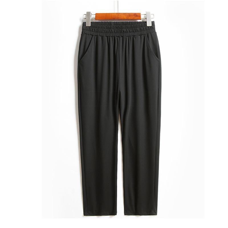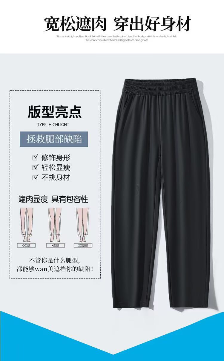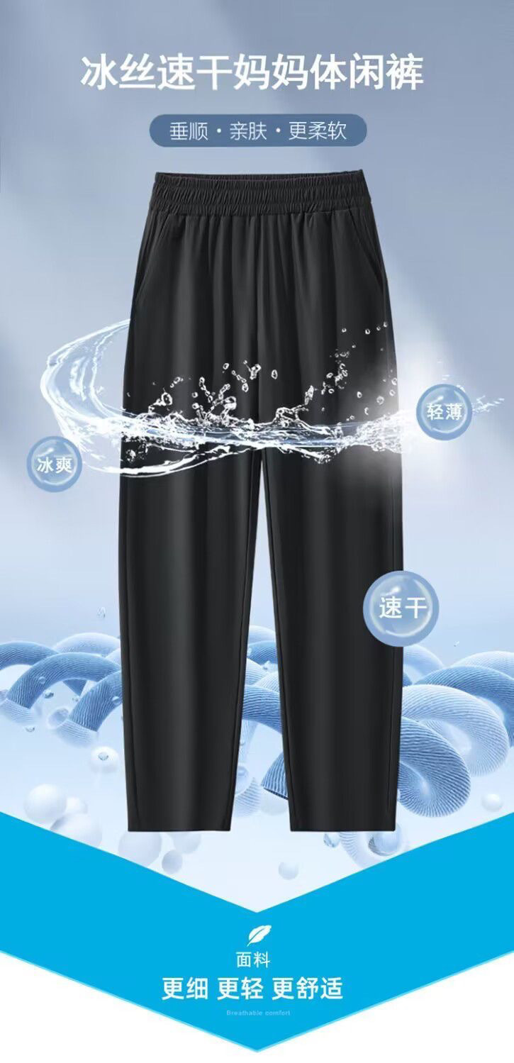2024 중년 여름 얇은 얼음 실크 빠른 건조 느슨한 스트레이트 레그 올 매치 어머니 바지 장로 여성 엘리트 허리 바지