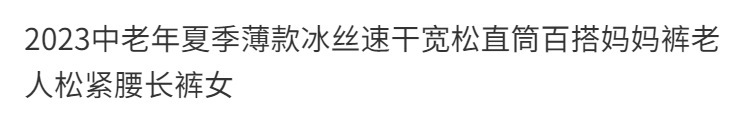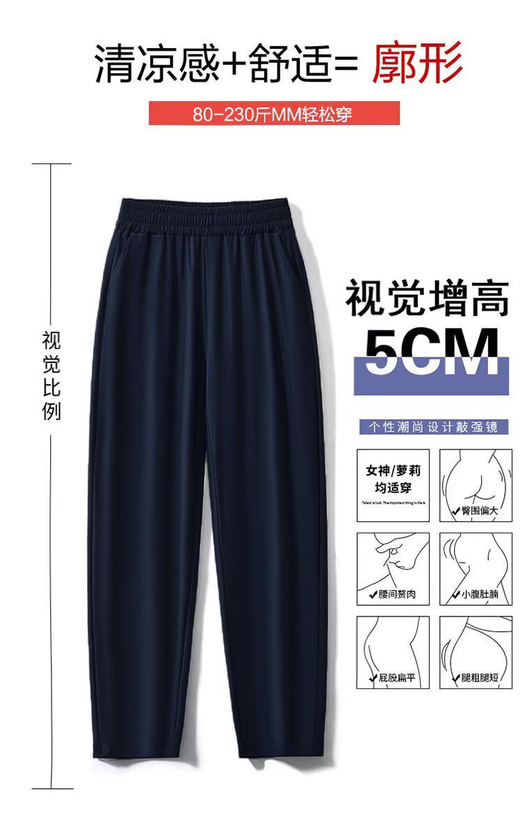 2024 중년 여름 얇은 얼음 실크 빠른 건조 느슨한 스트레이트 레그 올 매치 어머니 바지 장로 여성 엘리트 허리 바지스토어 가기