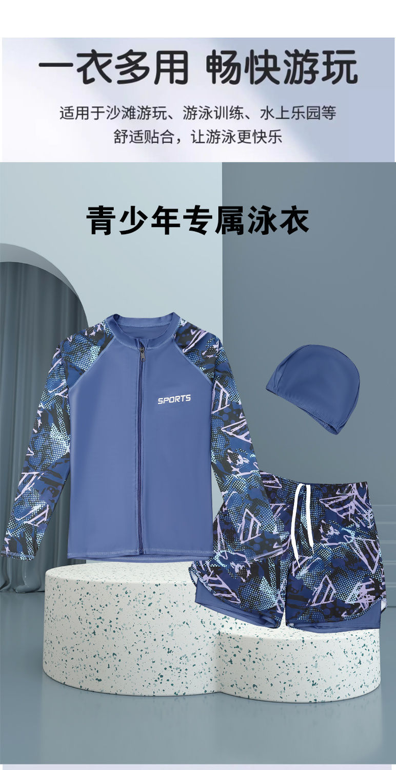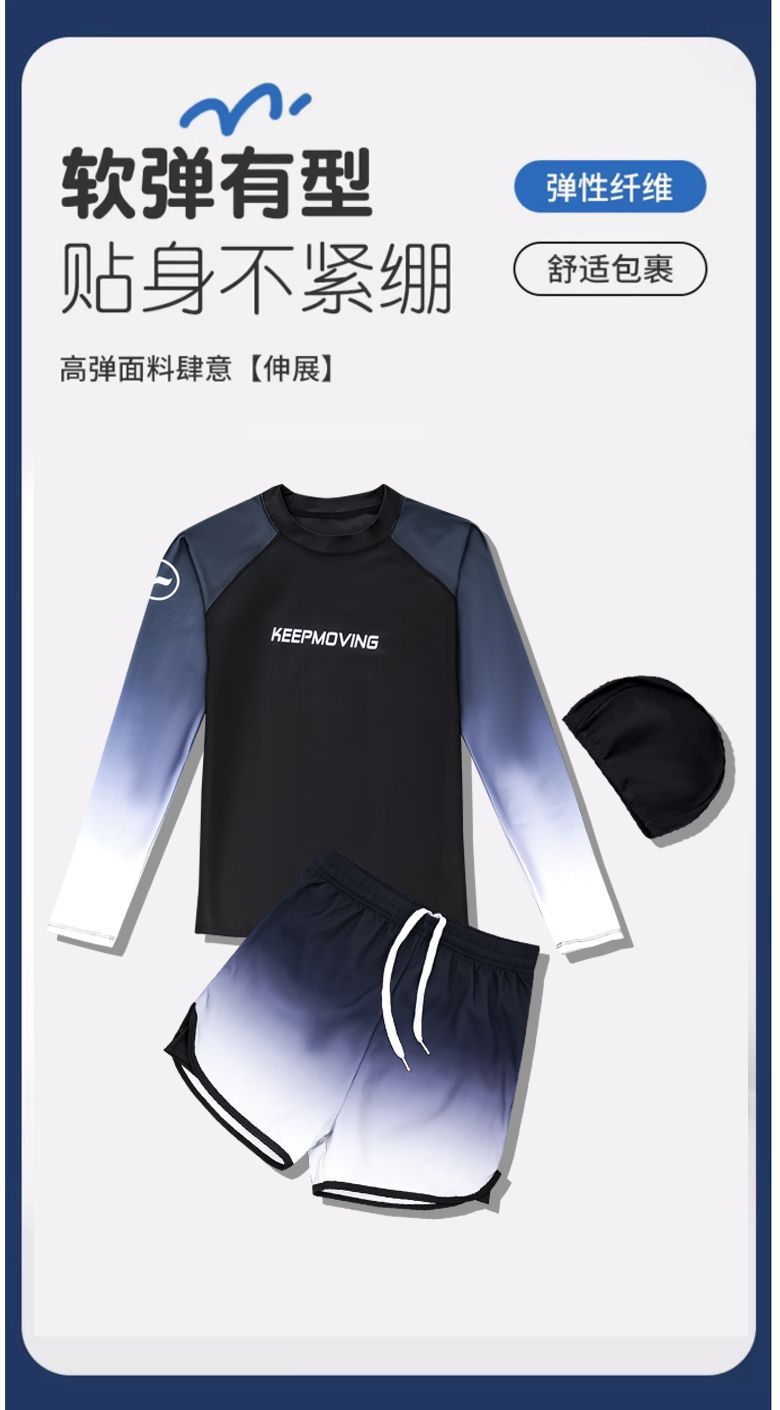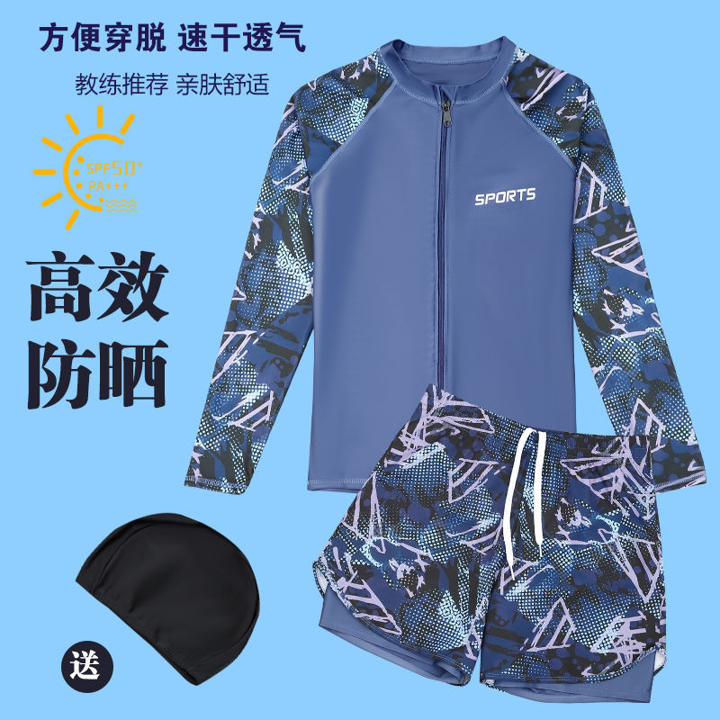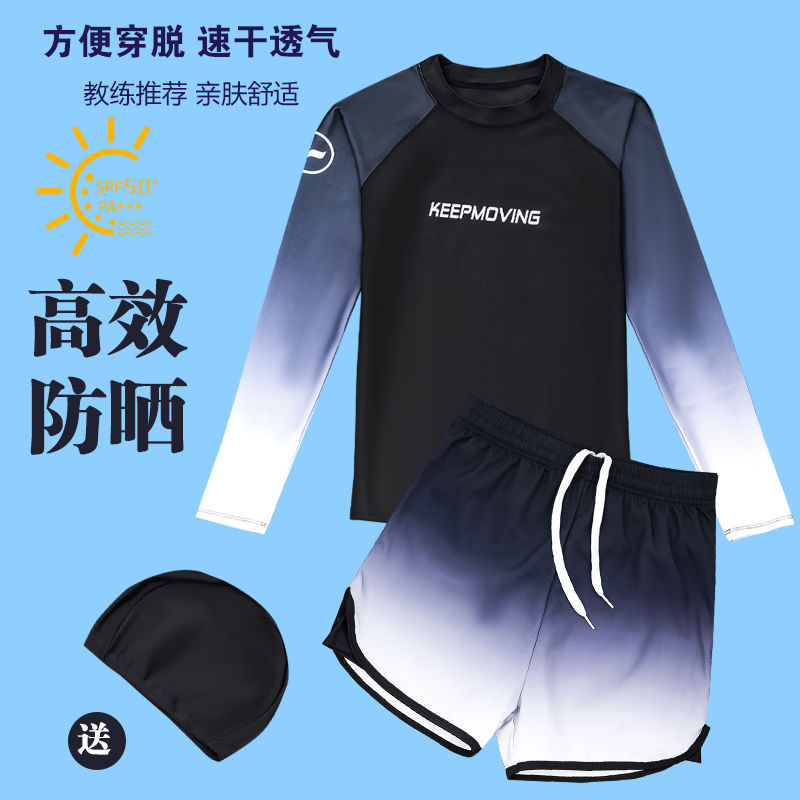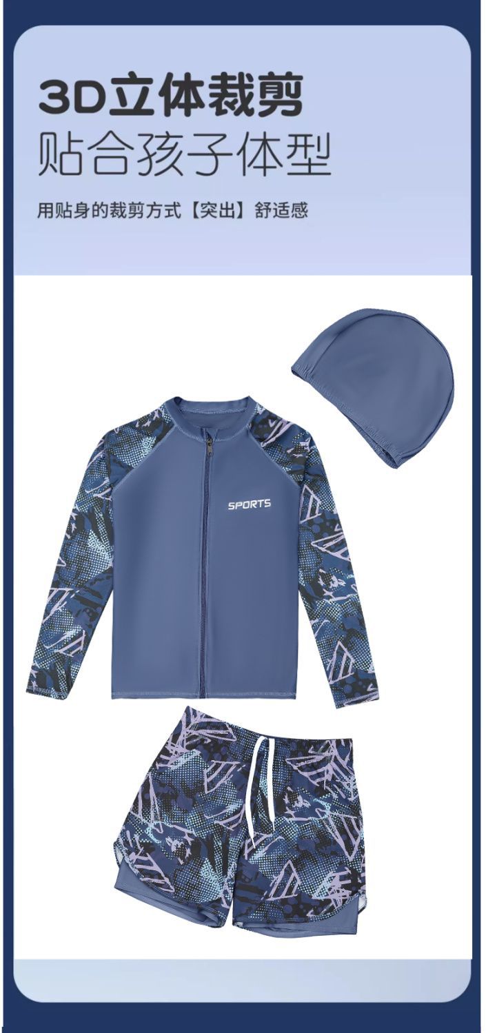 어린이 수영복 및 바지 통통한 어린이 플러스 뚱뚱한 남성 긴팔 플러스 사이즈 분할 태양 방지 빠른 건조 수영복 중 · 대형 어린이 및 청소년 및 학생