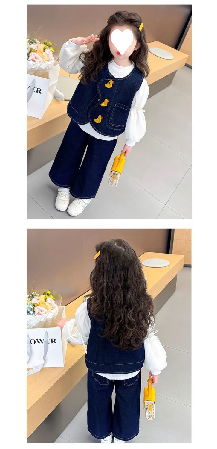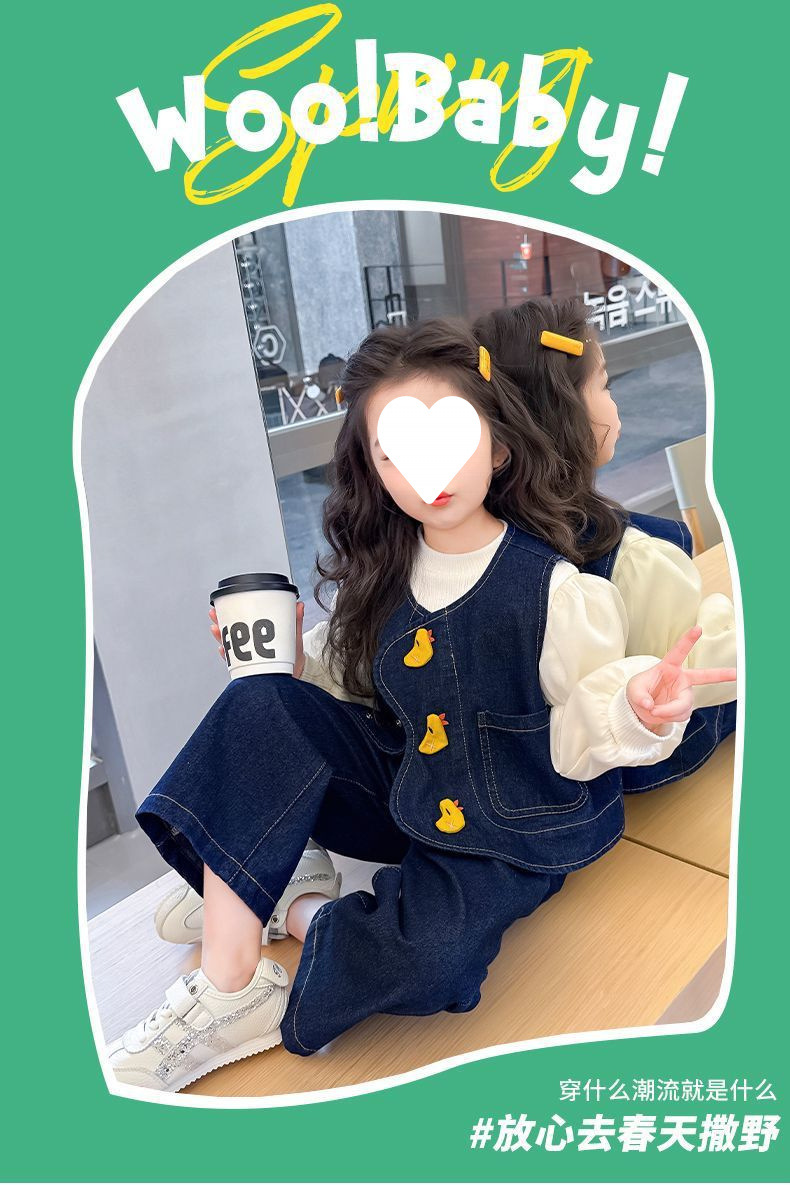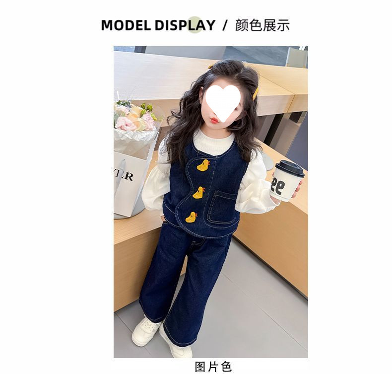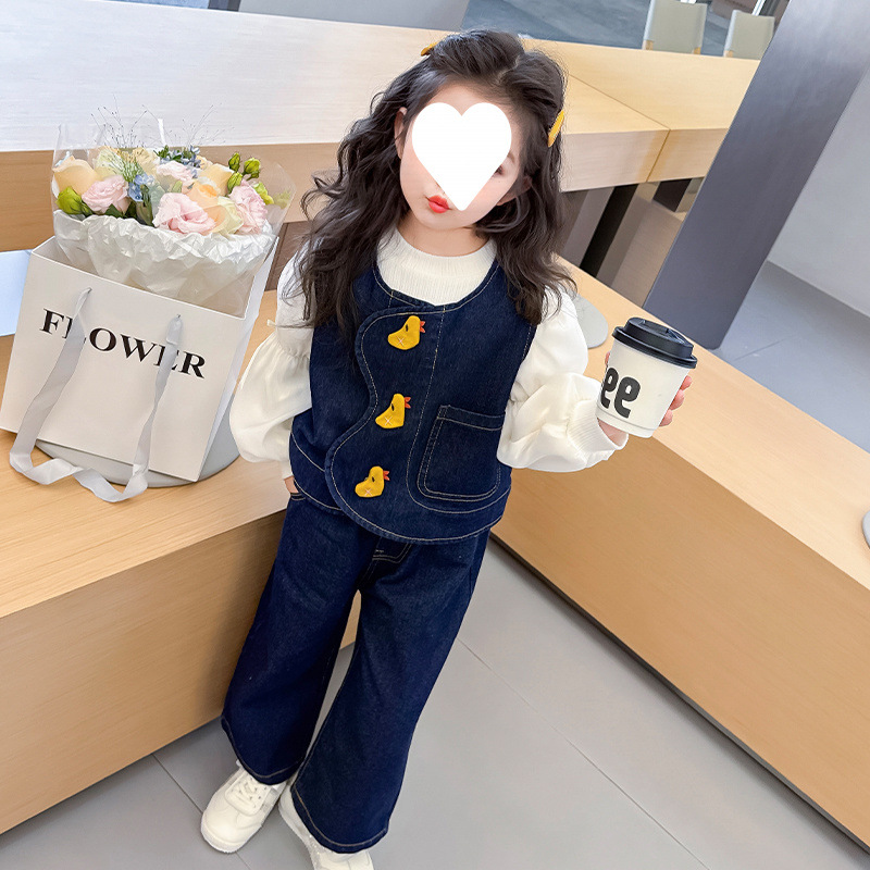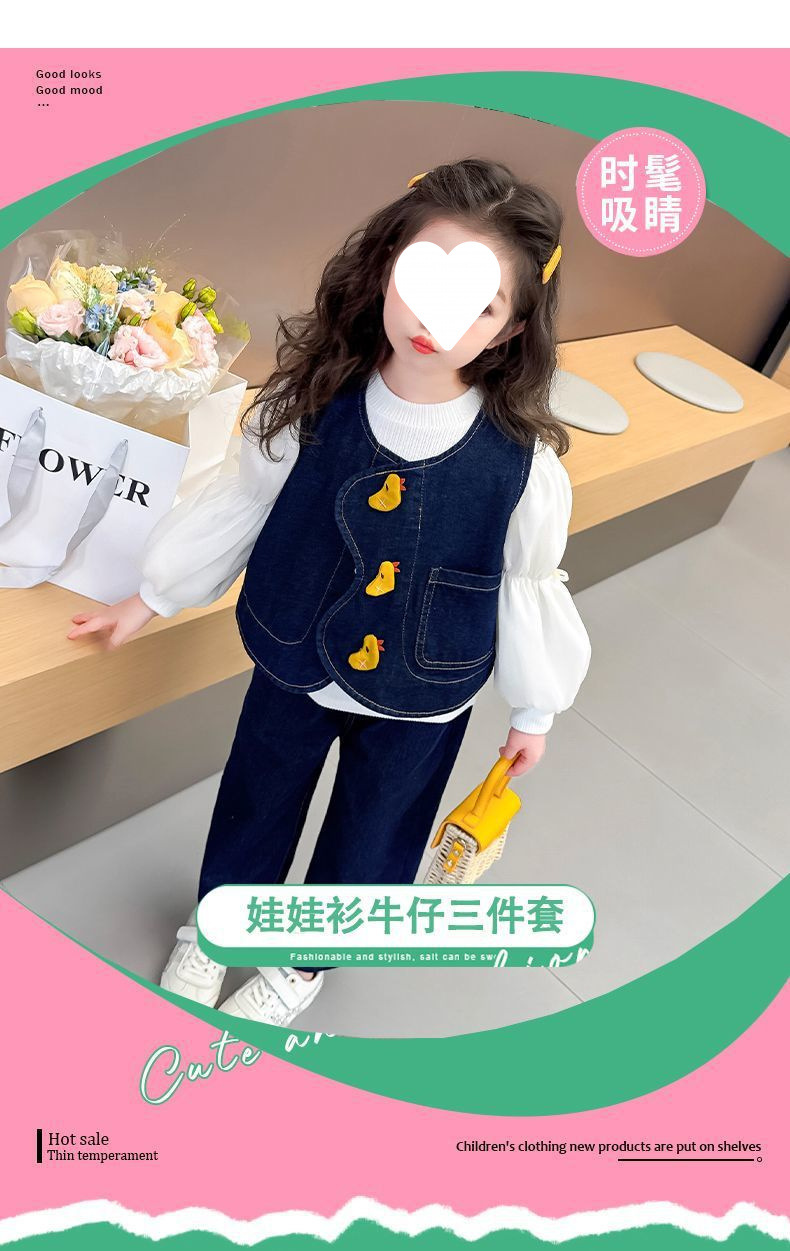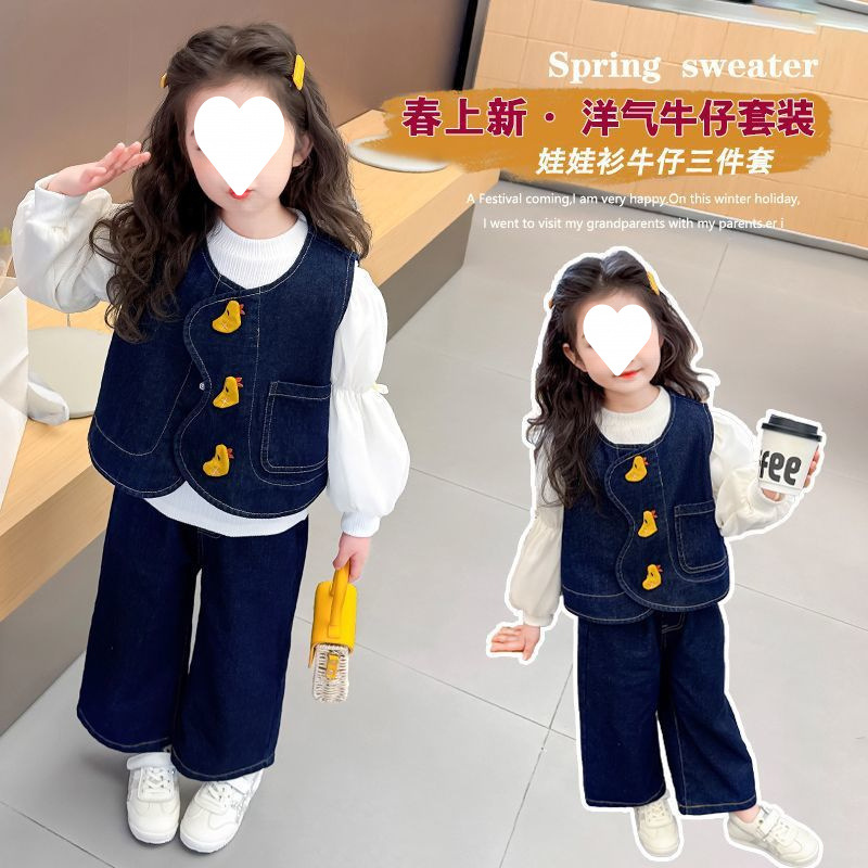 [점포 판매] 여자 세트 가을 2025 새 유행 아기 한국 조끼 데님 3 개 조각