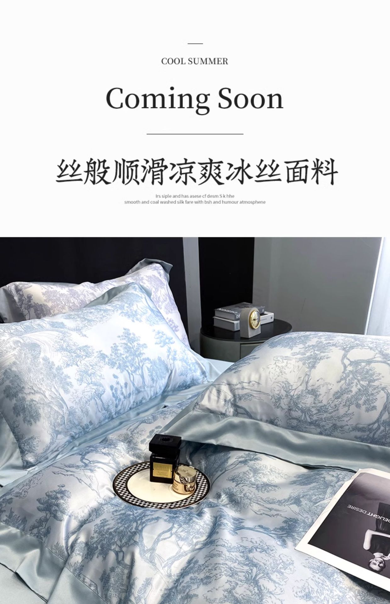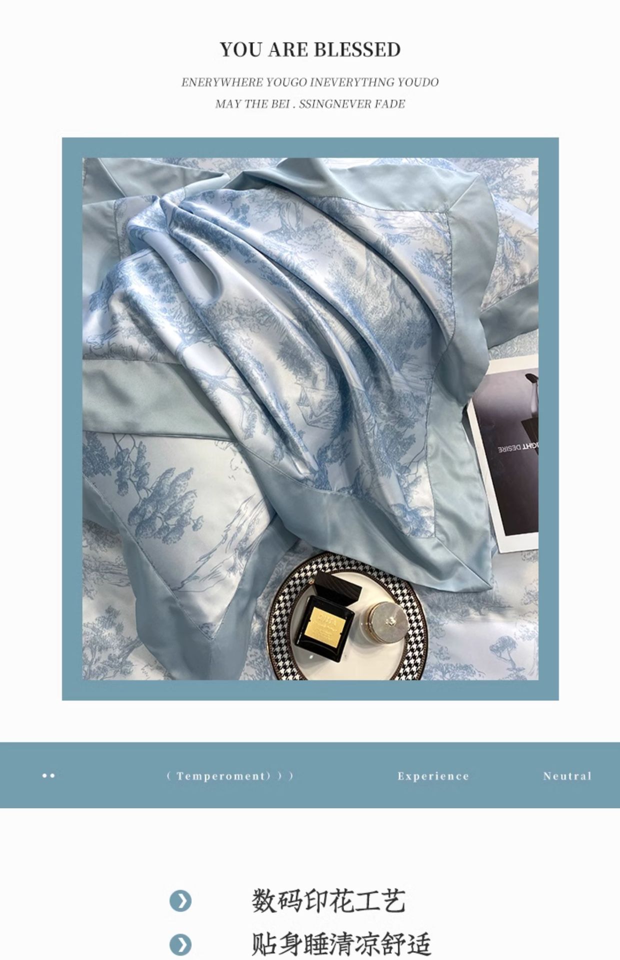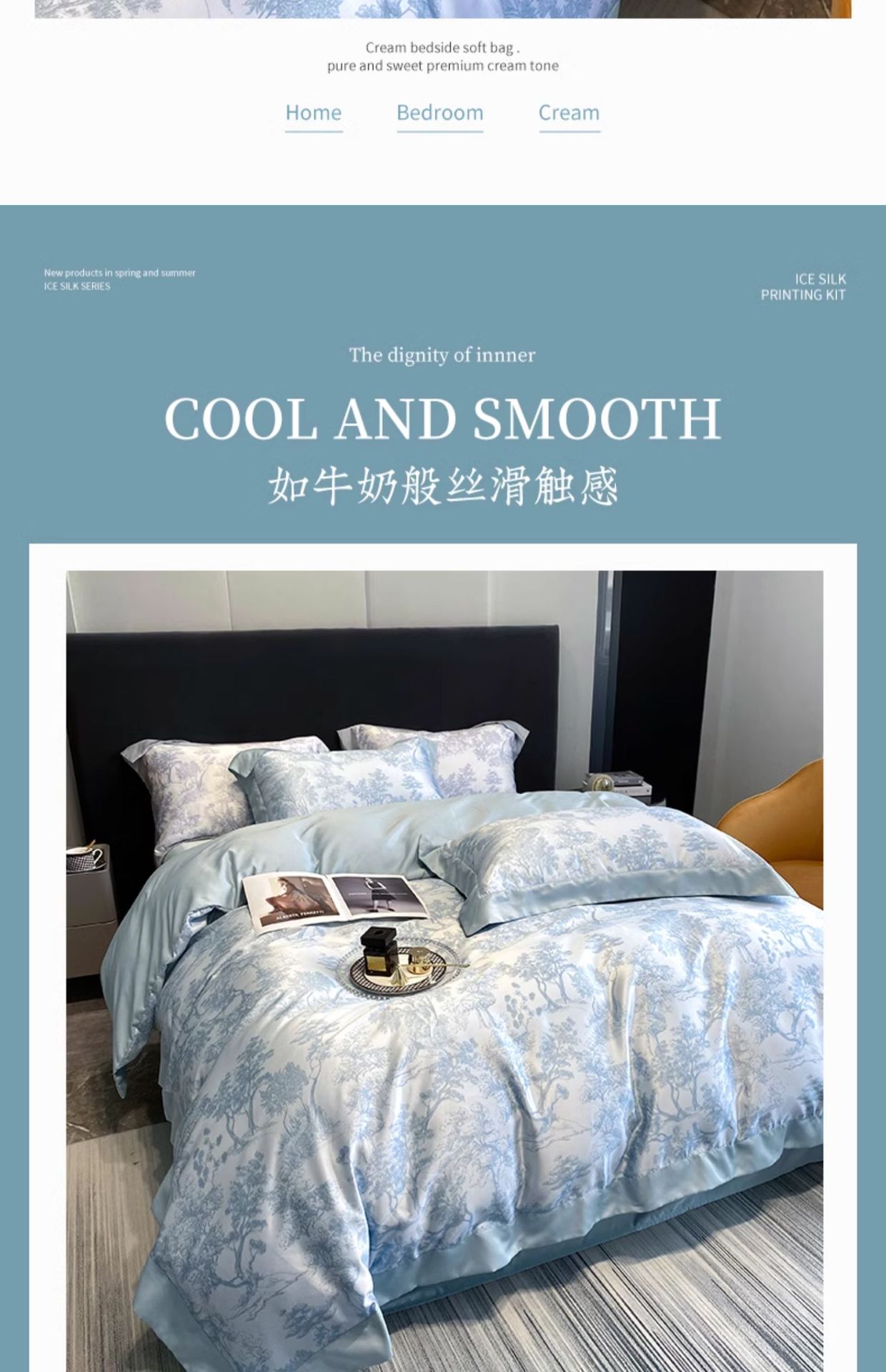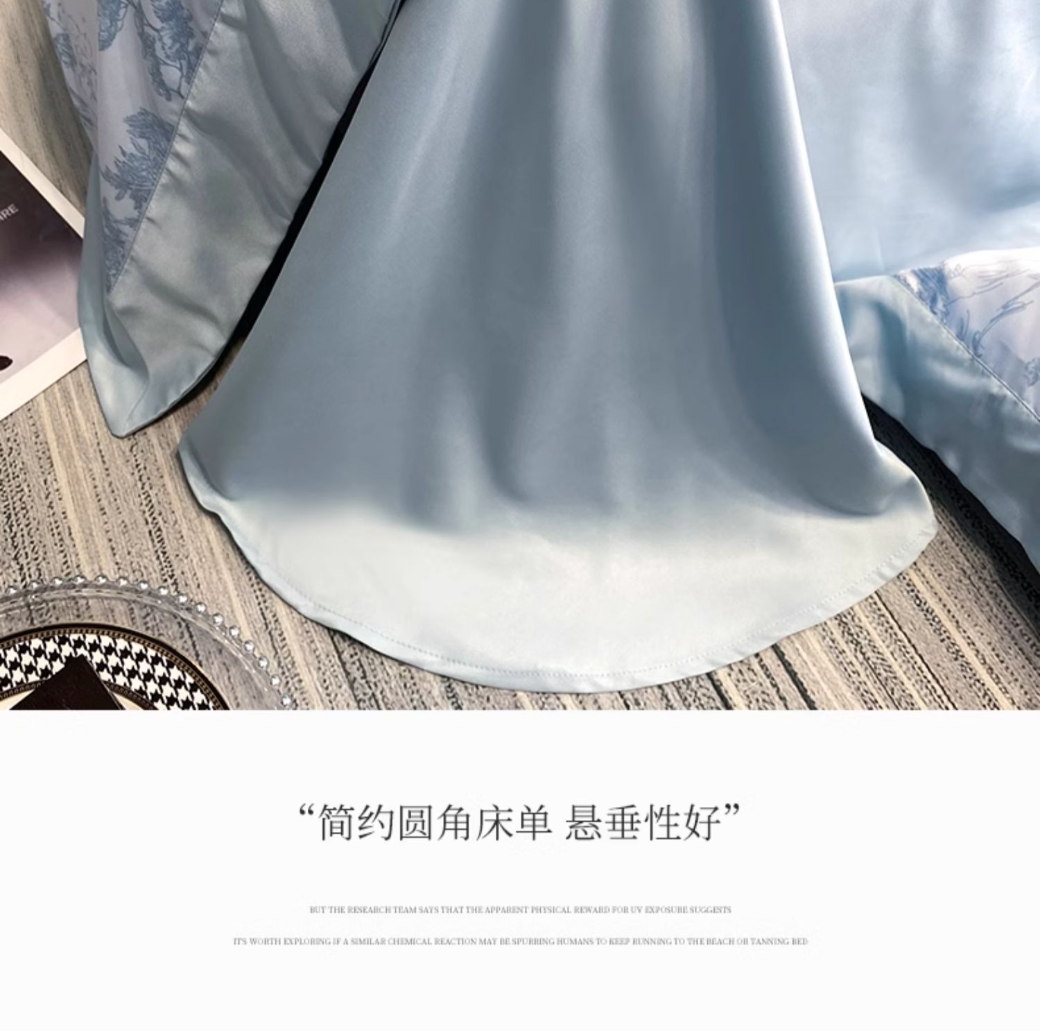 간단한 씻은 실크 4 피스 아이스 실크 퀼트 커버 유럽식 실크 벗은 잠자는 여름 침대 텐셀 침대 시트스토어 가기