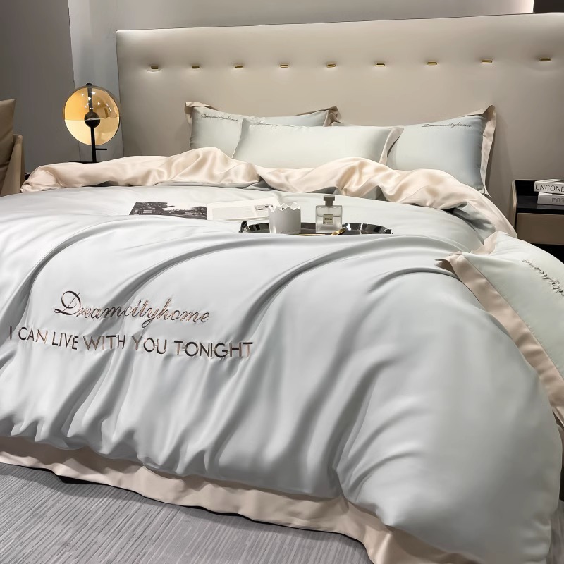 간단한 씻은 실크 4 피스 아이스 실크 퀼트 커버 유럽식 실크 벗은 잠자는 여름 침대 텐셀 침대 시트