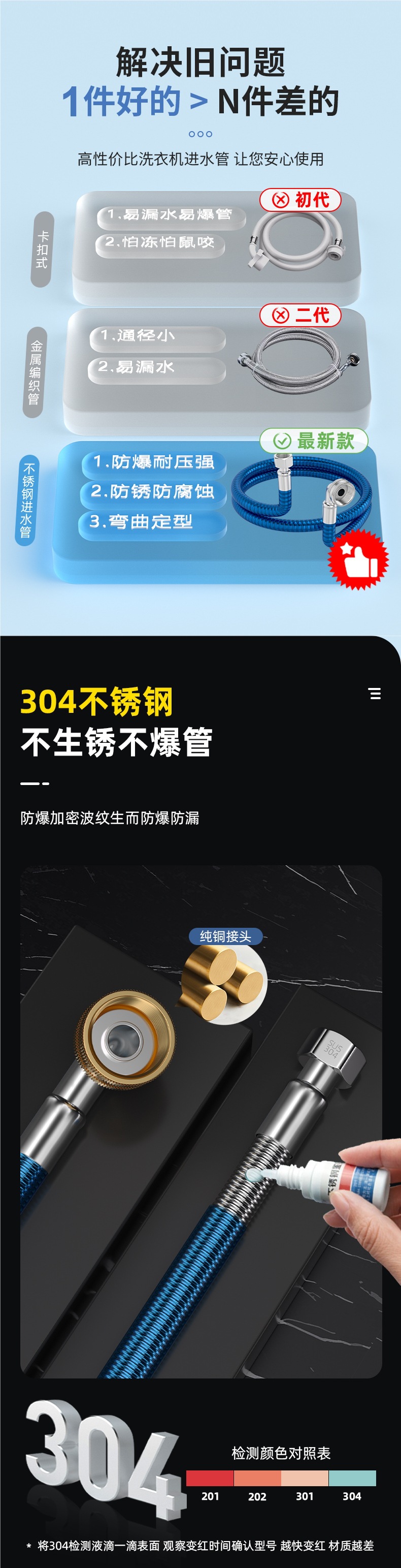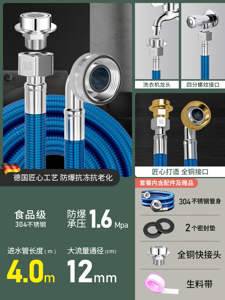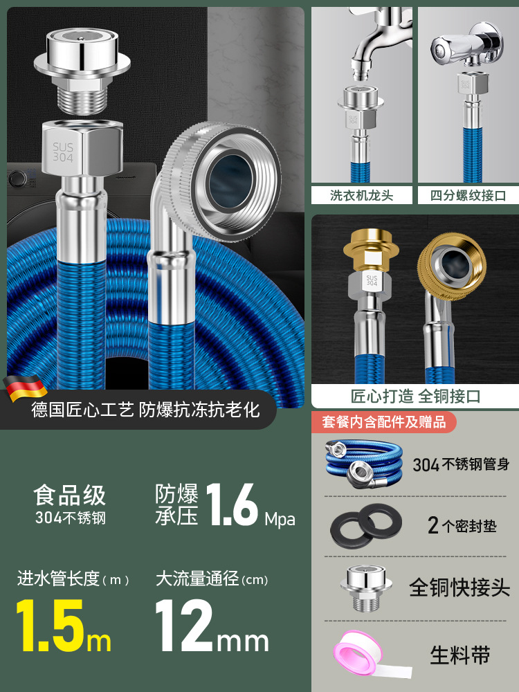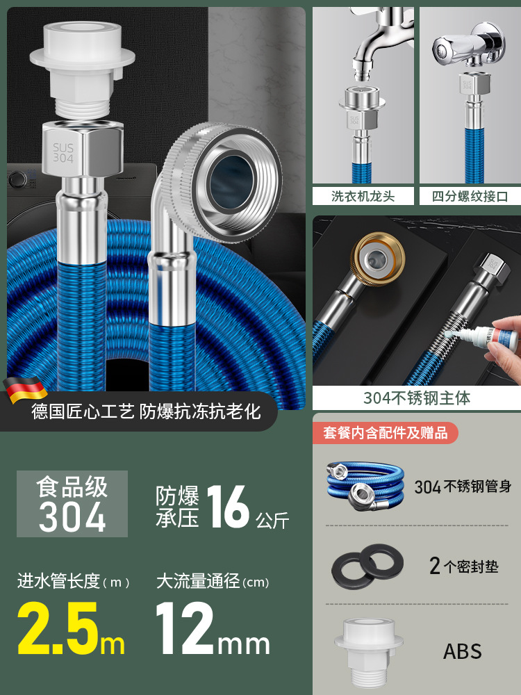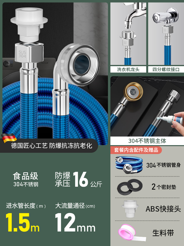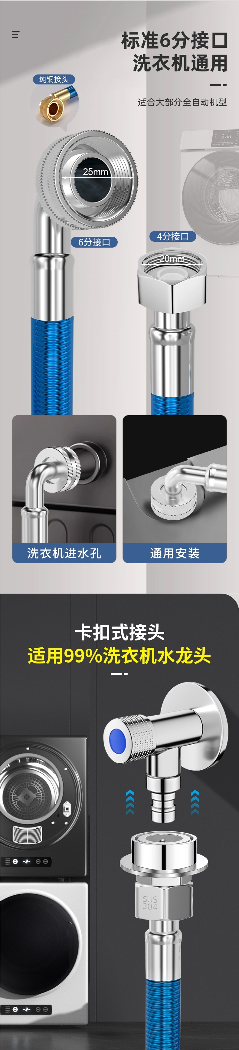 스테인레스 스틸 완전 자동 세탁기 물 입구 파이프 드럼 확장 된 수도관 호스 원래 에너지 유니버설 조인트스토어 가기