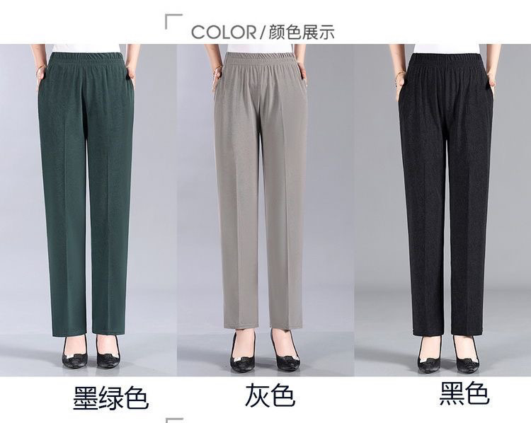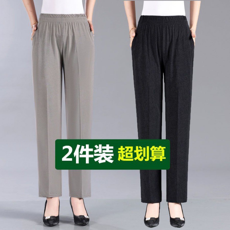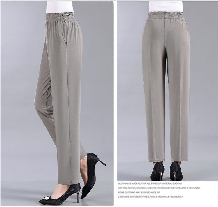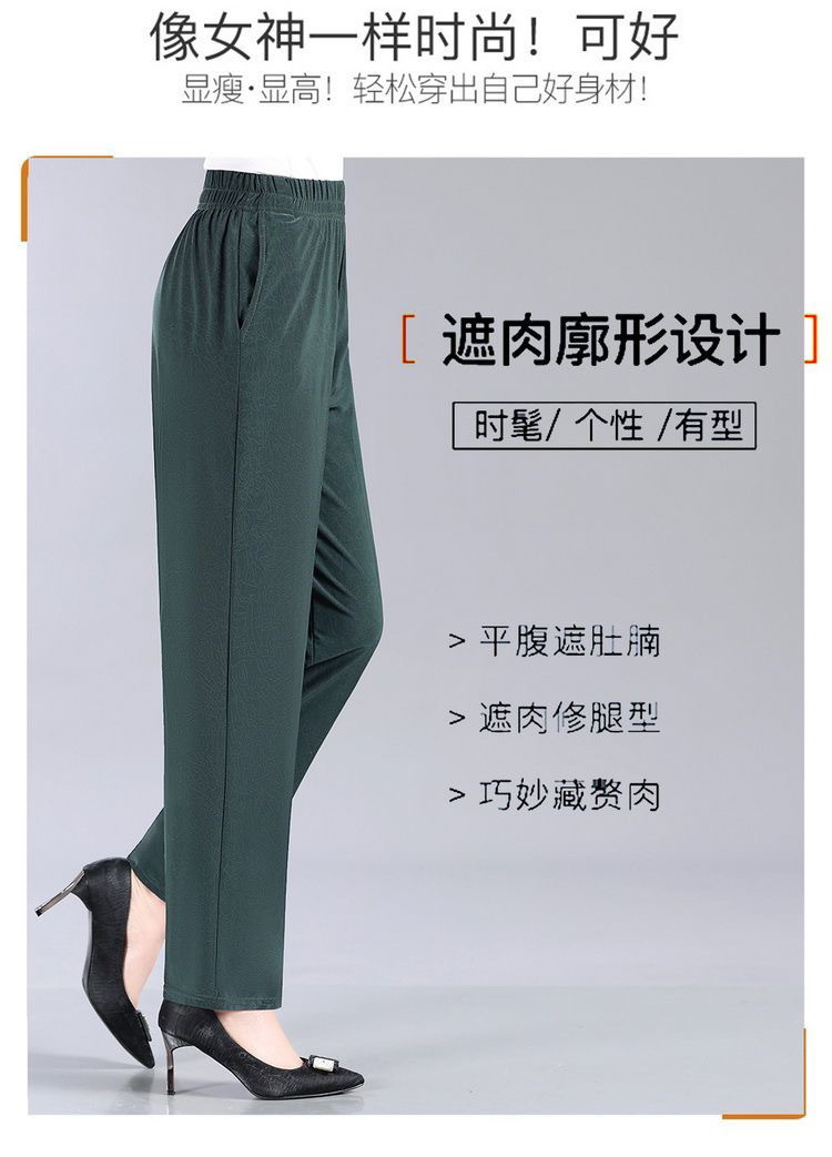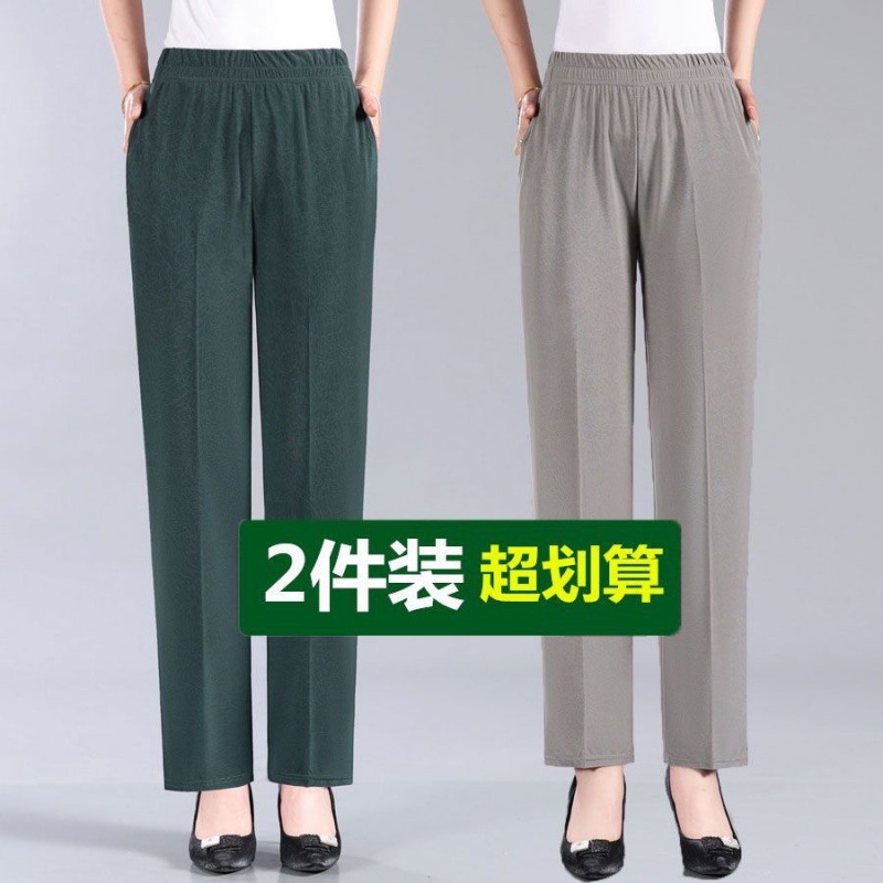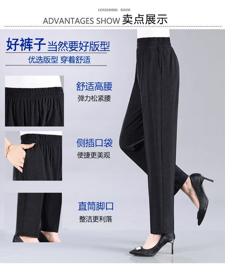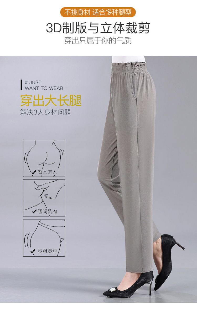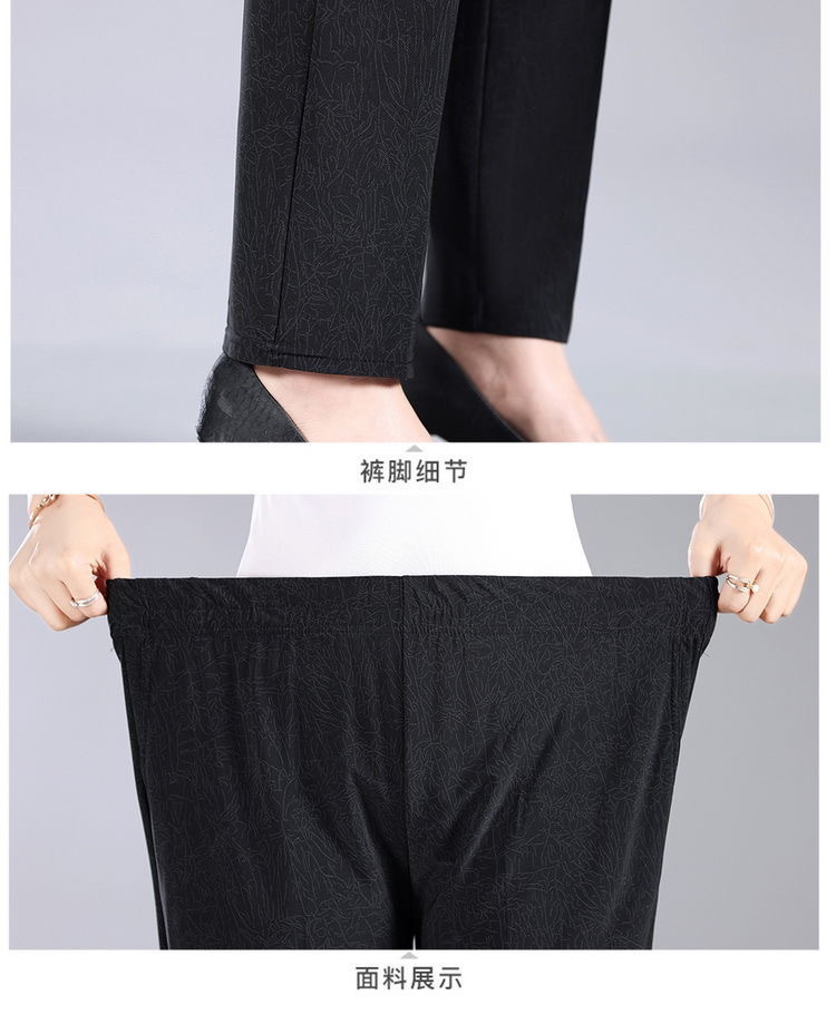 여름 아이스 실크 어머니 바지 2024 중년 여성 바지 높은 허리 스트레치 발목 길이 바지 중년 여성 캐주얼 스트레이트 바지스토어 가기