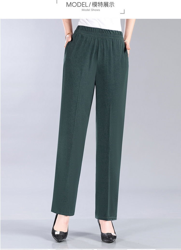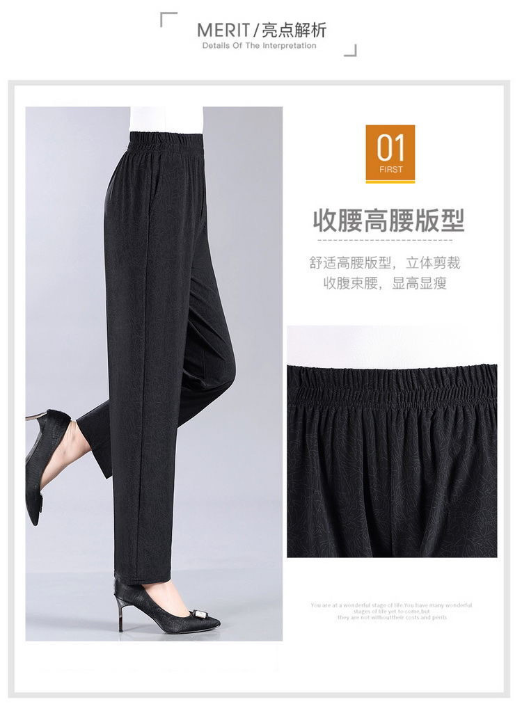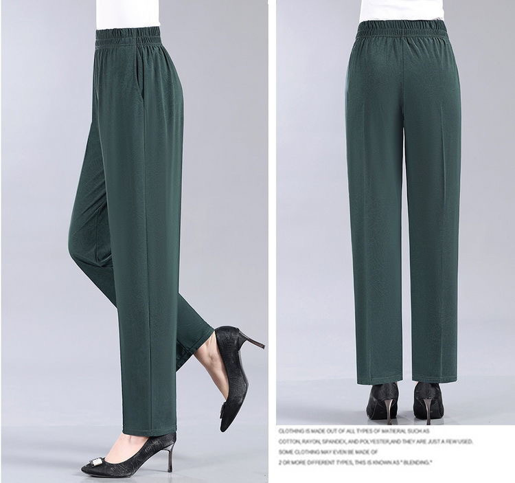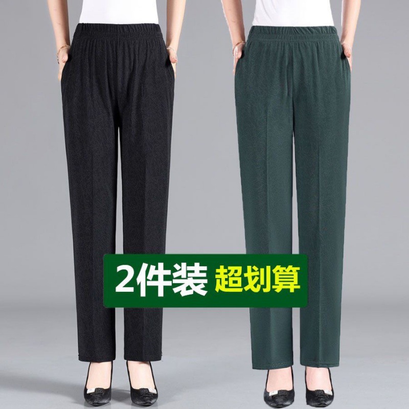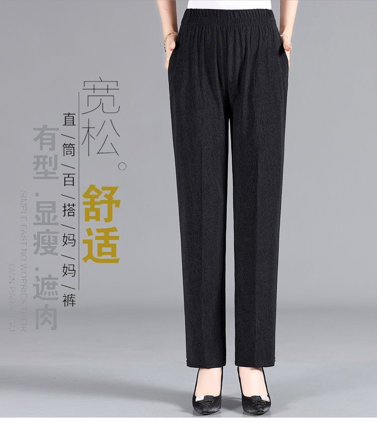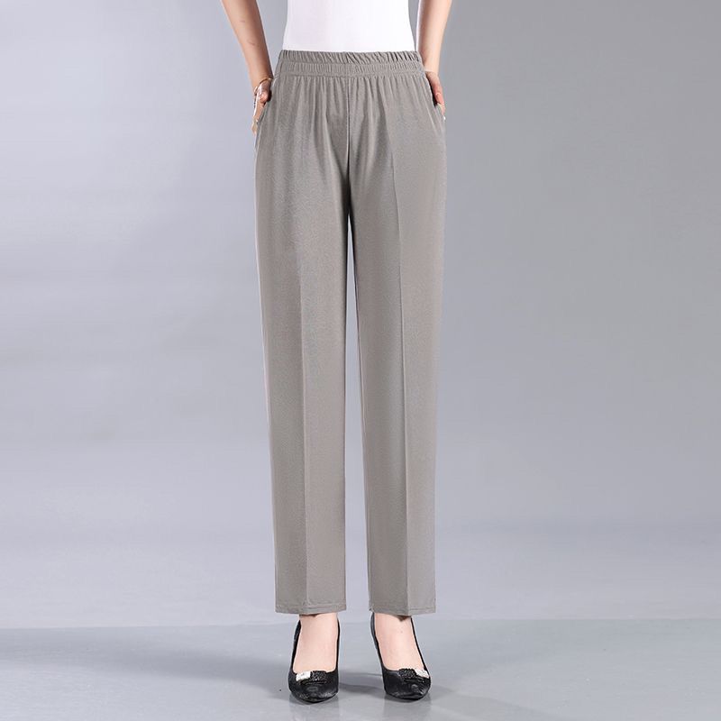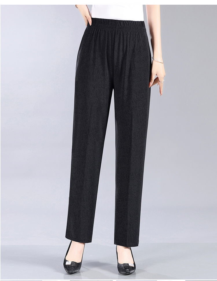 여름 아이스 실크 어머니 바지 2024 중년 여성 바지 높은 허리 스트레치 발목 길이 바지 중년 여성 캐주얼 스트레이트 바지스토어 가기