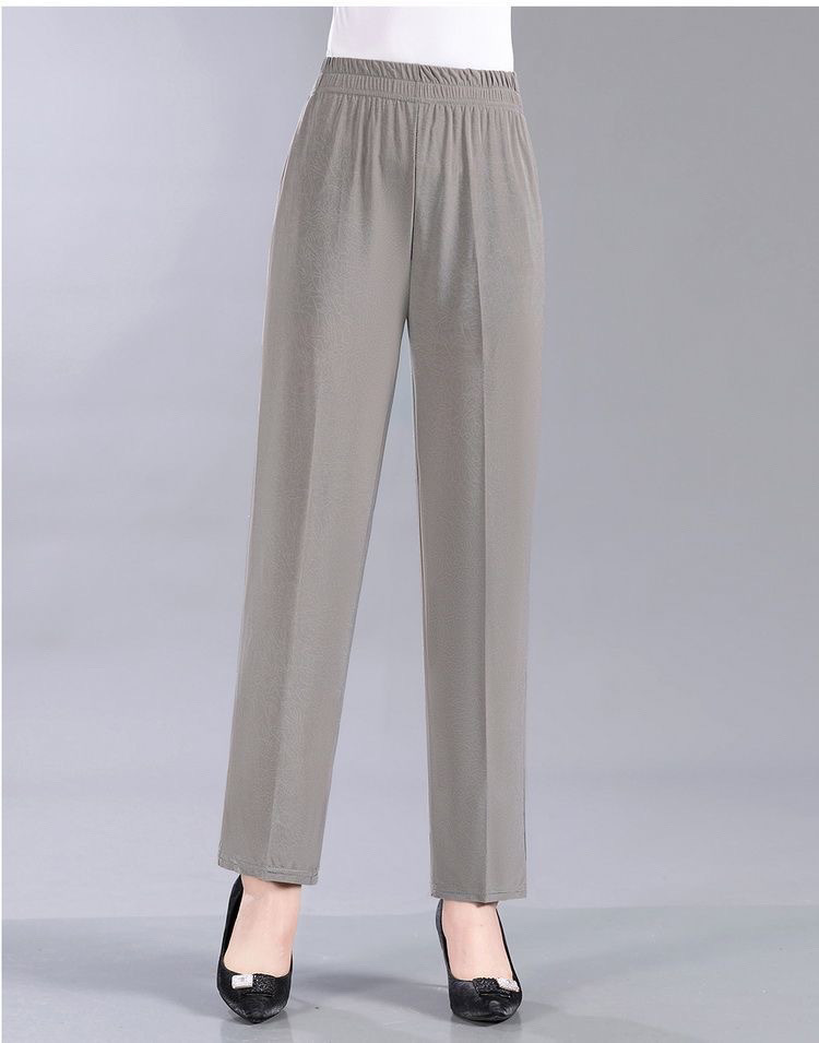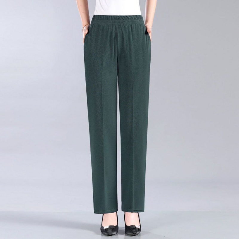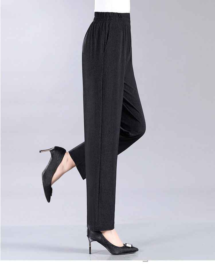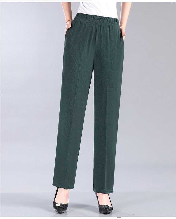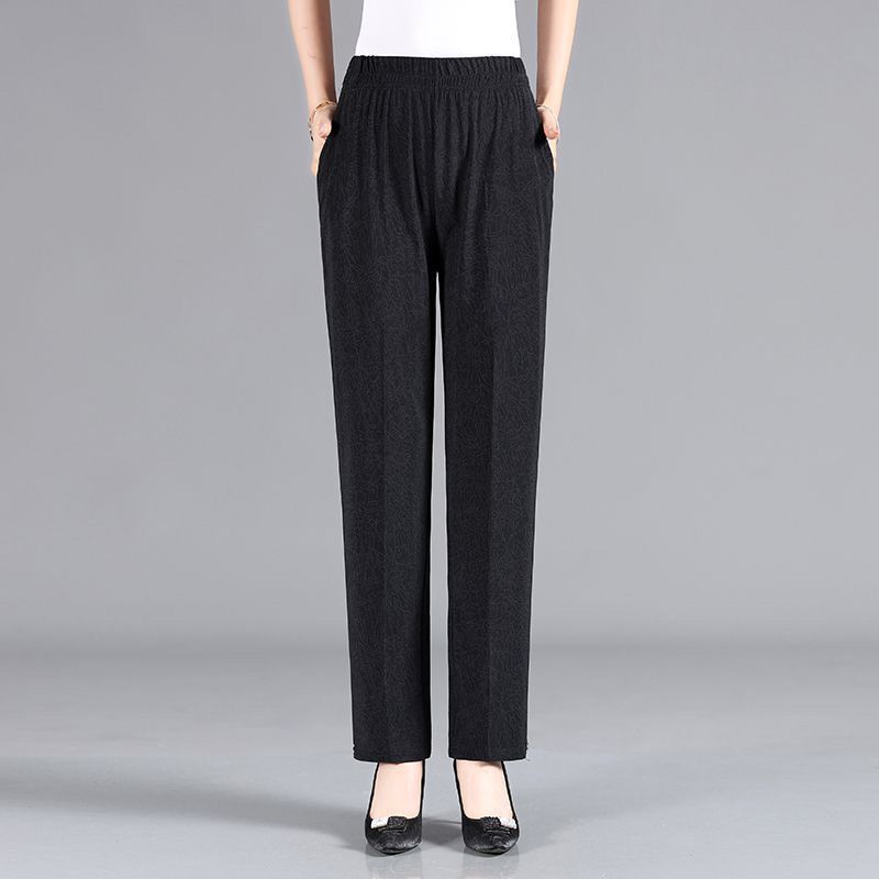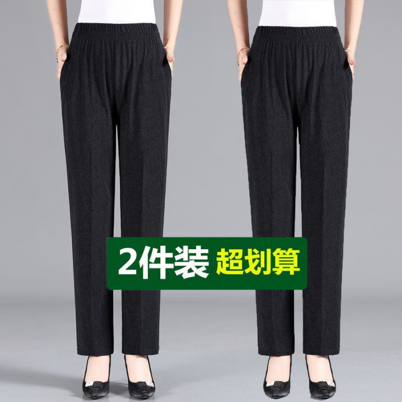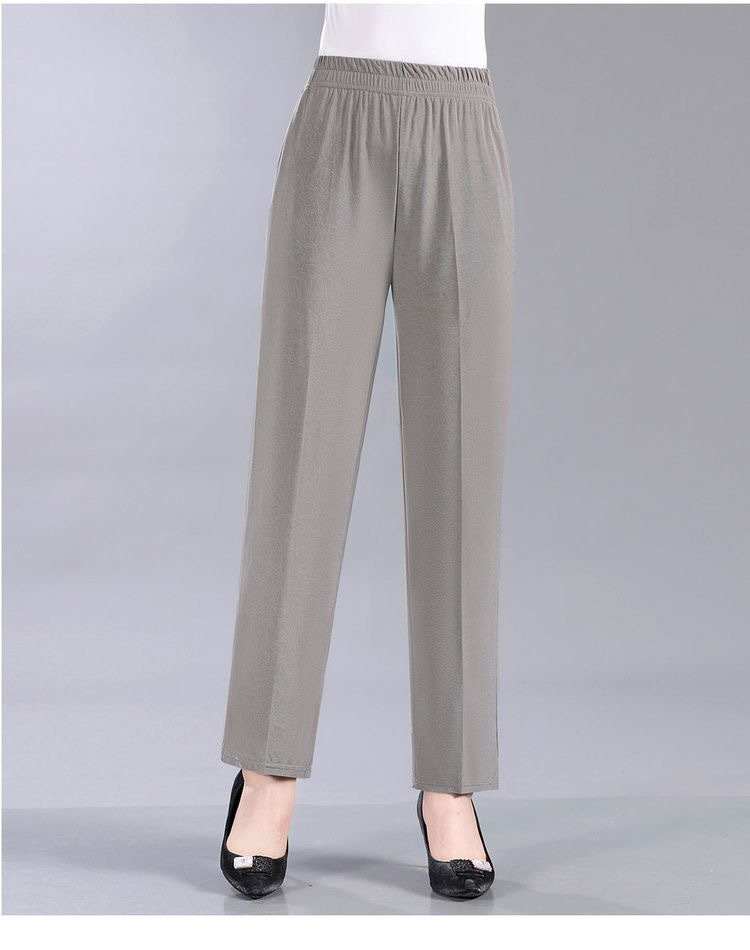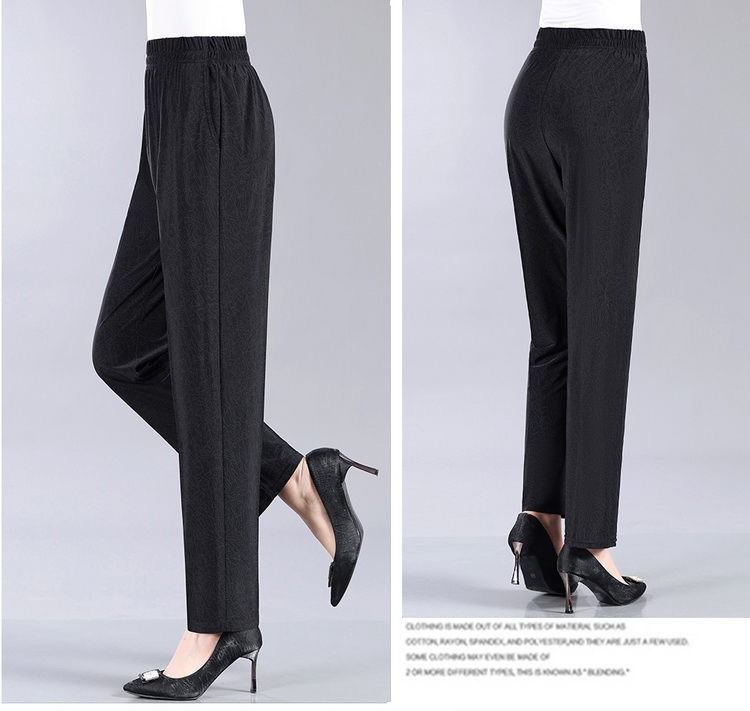 여름 아이스 실크 어머니 바지 2024 중년 여성 바지 높은 허리 스트레치 발목 길이 바지 중년 여성 캐주얼 스트레이트 바지스토어 가기
