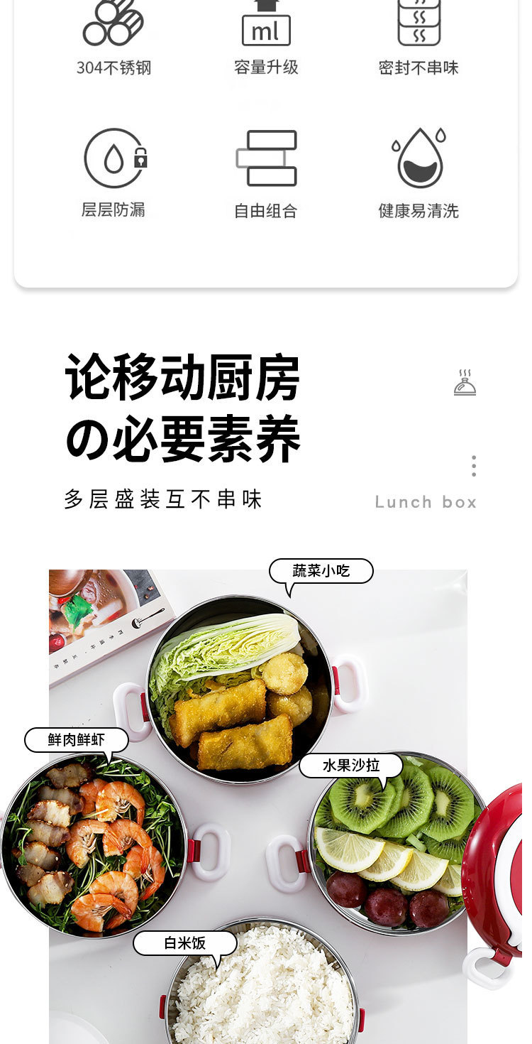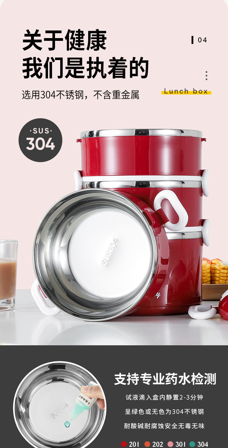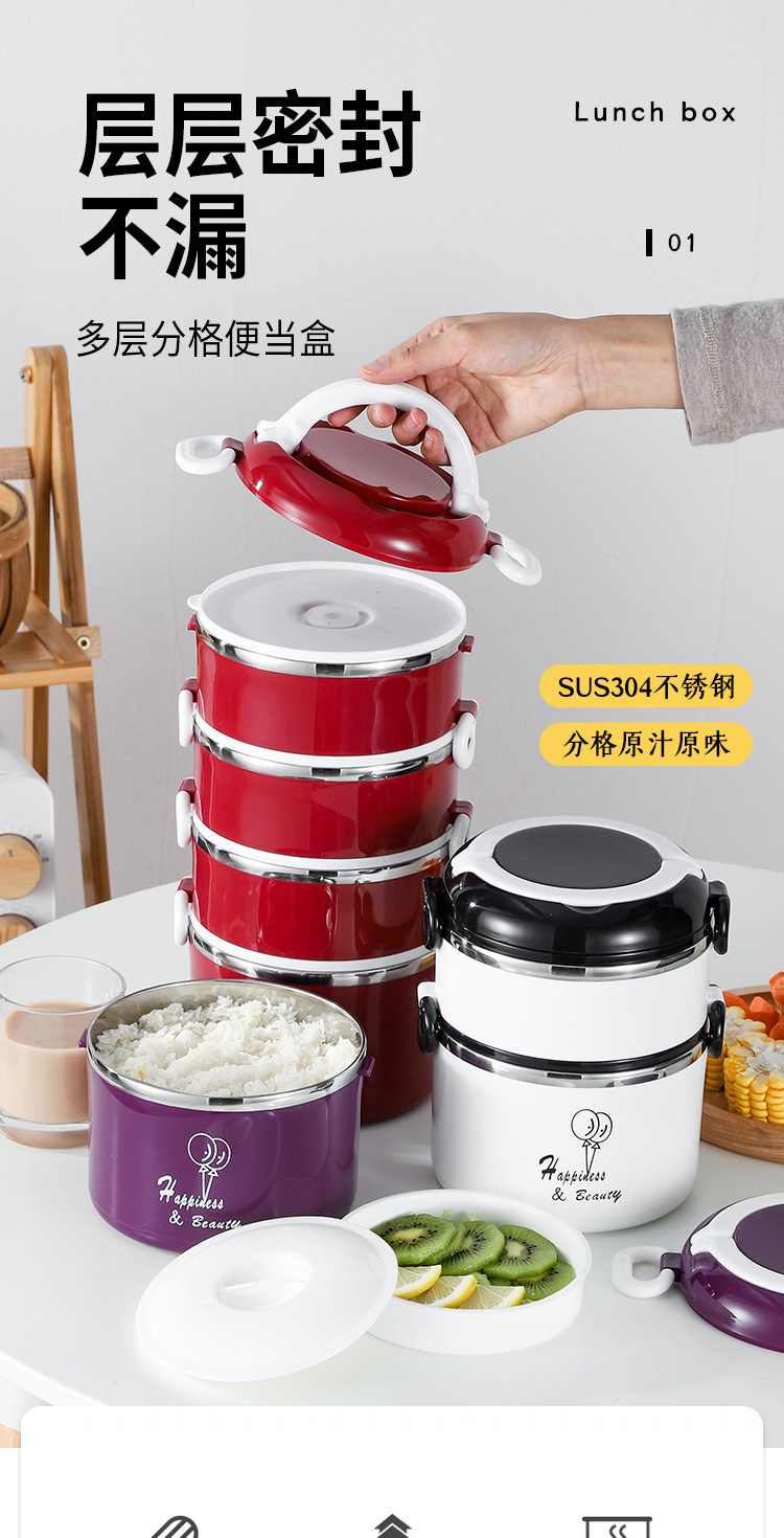 304 스테인레스 스틸 절연 도시락 상자 누출 방지 도시락 사무실 근로자 성인 학생 4 층 밀봉 절연 배럴 공장