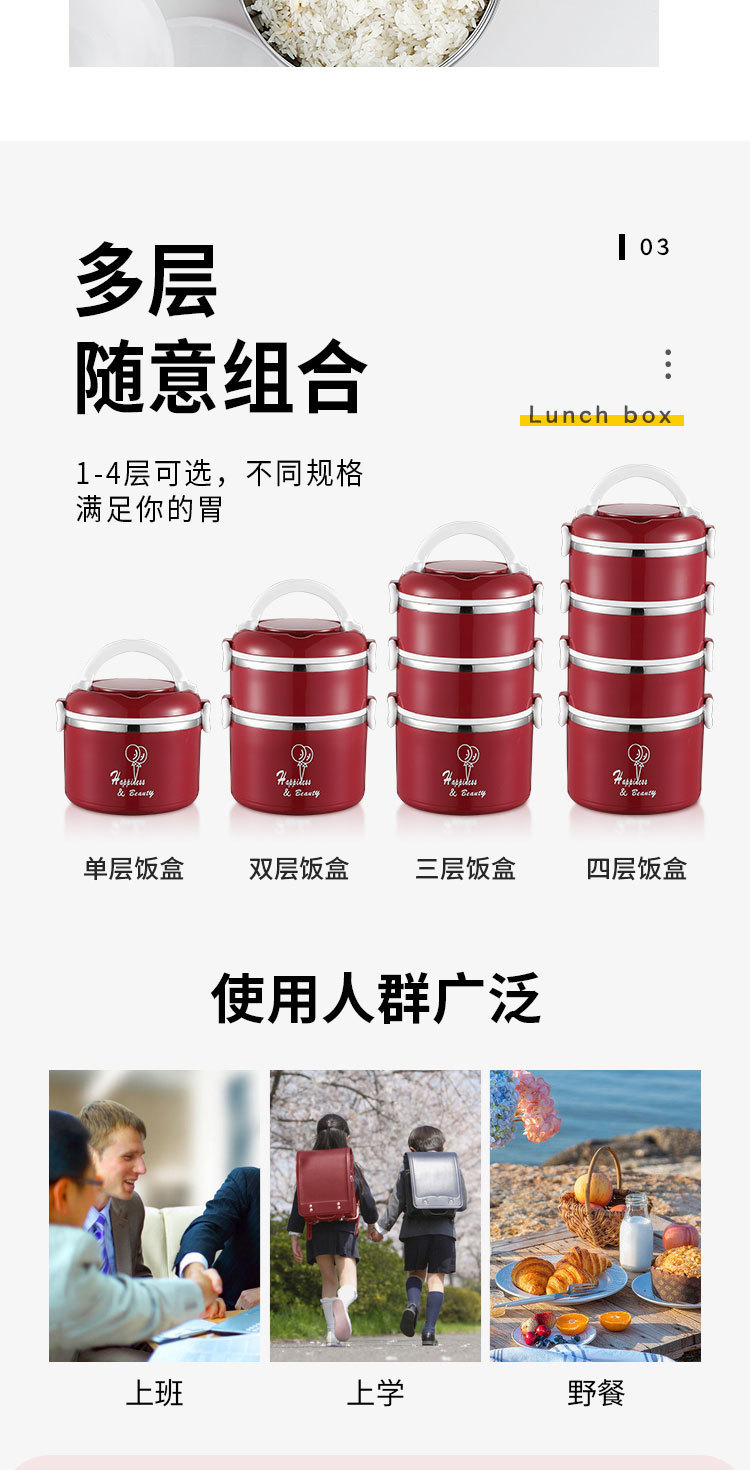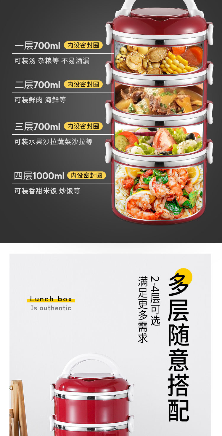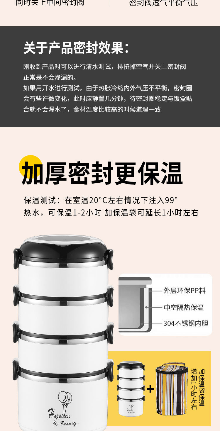 304 스테인레스 스틸 절연 도시락 상자 누출 방지 도시락 사무실 근로자 성인 학생 4 층 밀봉 절연 배럴 공장