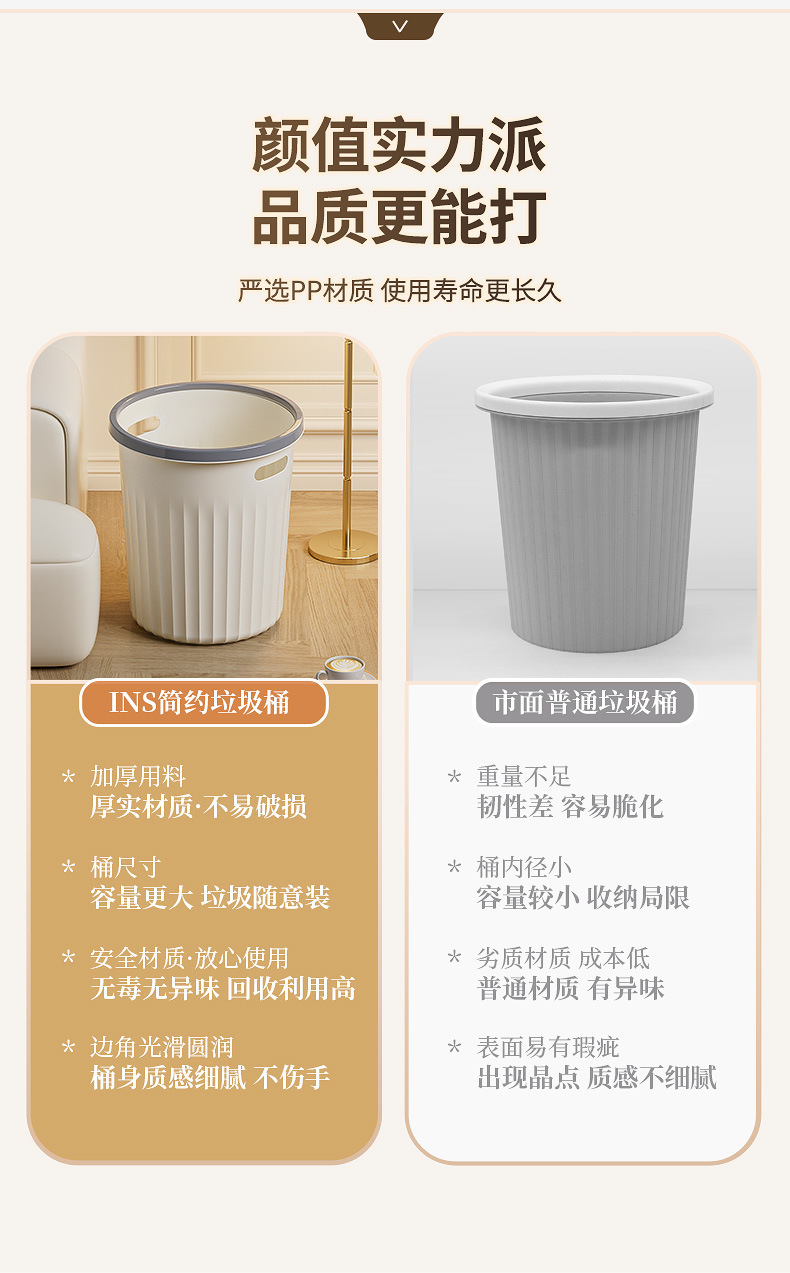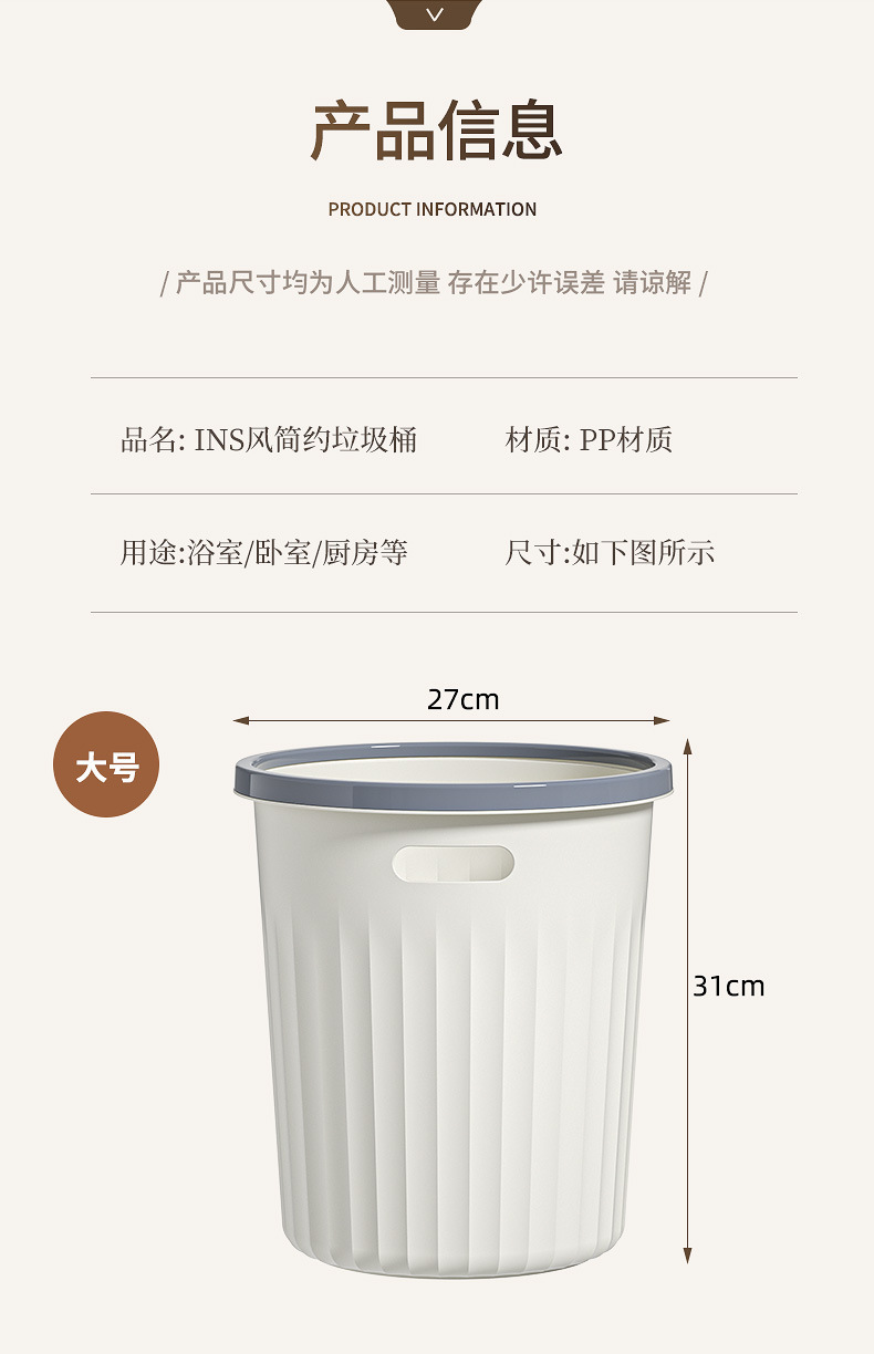 Ins 스타일 가정용 휴지통 수 높은 가치 주방 대형 휴지통 간단한 화장실 압력 링 휴지통 바구니