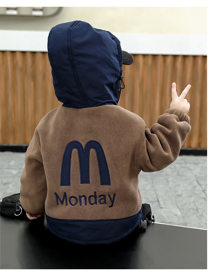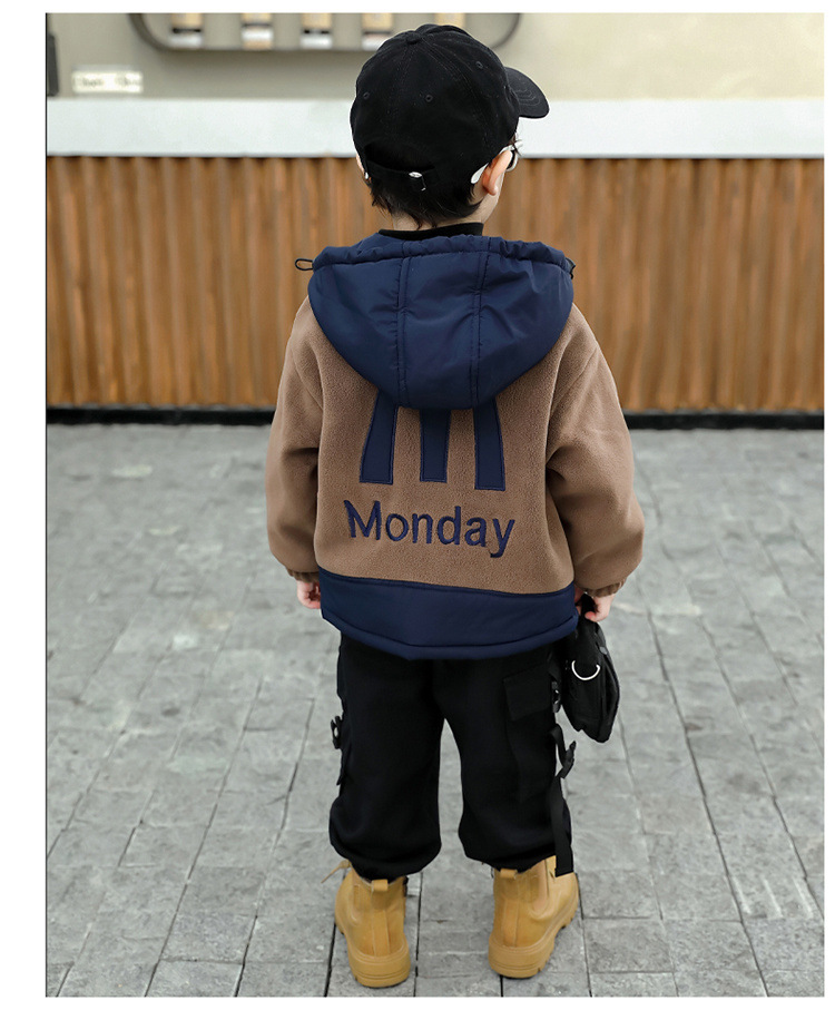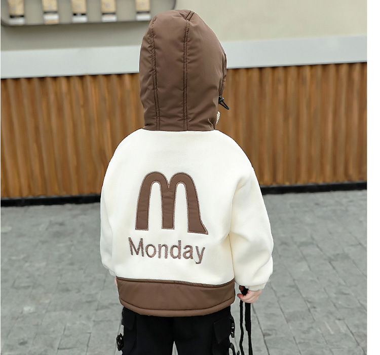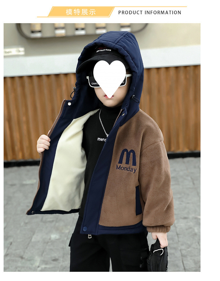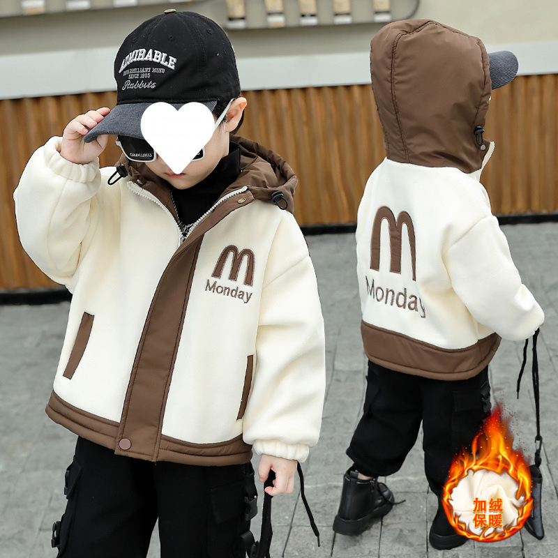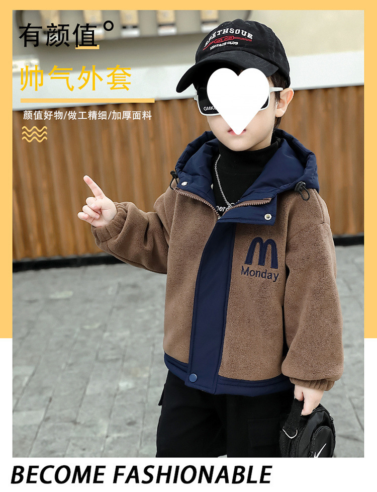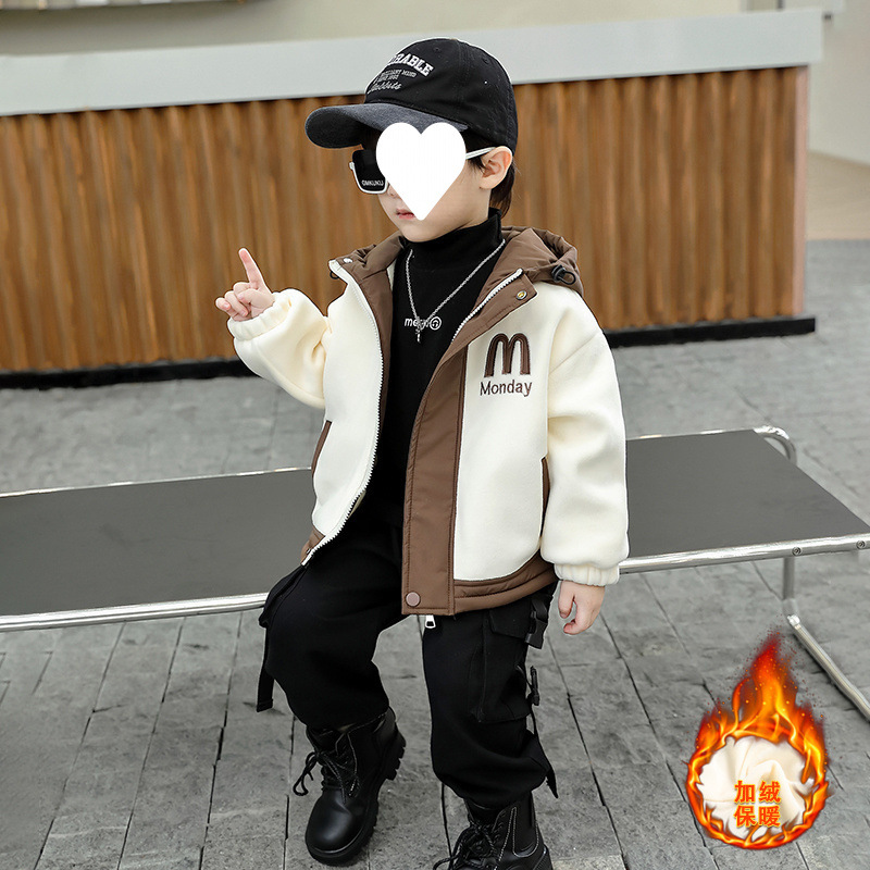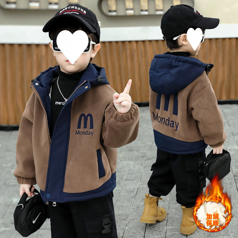 2025 가을과 겨울을위한 소년 벨벳 재킷 중소 어린이 겨울 두꺼운 코튼 패딩 재킷을위한 새로운 Styliken 후드 탑
