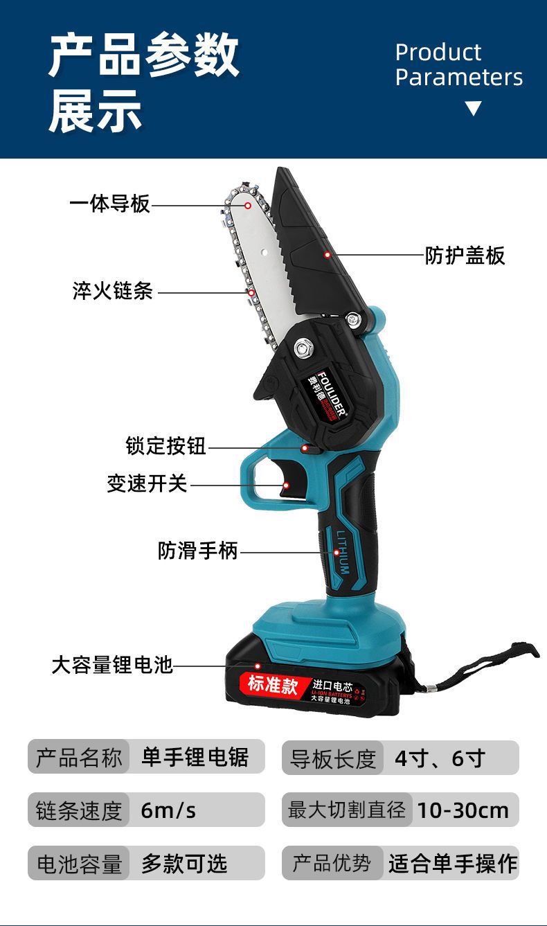 리튬 전기 톱 브러시리스 전기 체인은 충전식 휴대용 무선 전기 톱 가정용 작은 벌목 나무 절단 한 손 톱을 보았다
