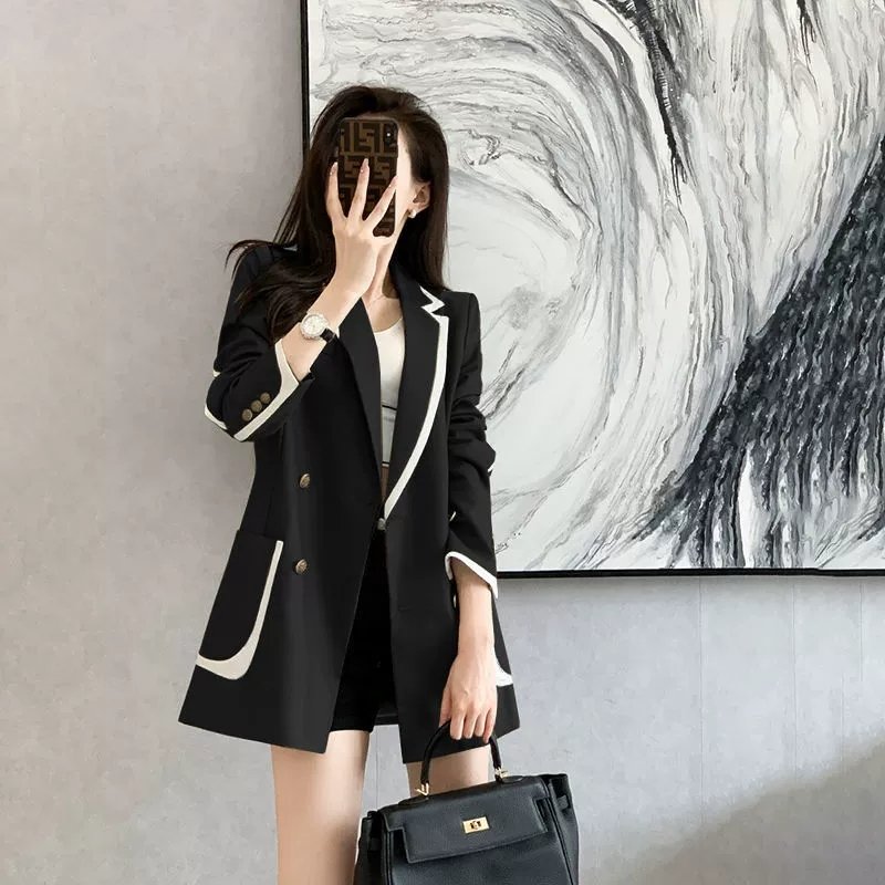 유럽 캐주얼 블랙 세트 세트 여성 2024 년 봄 새 올해 인기 작은 세트 코트스토어 가기