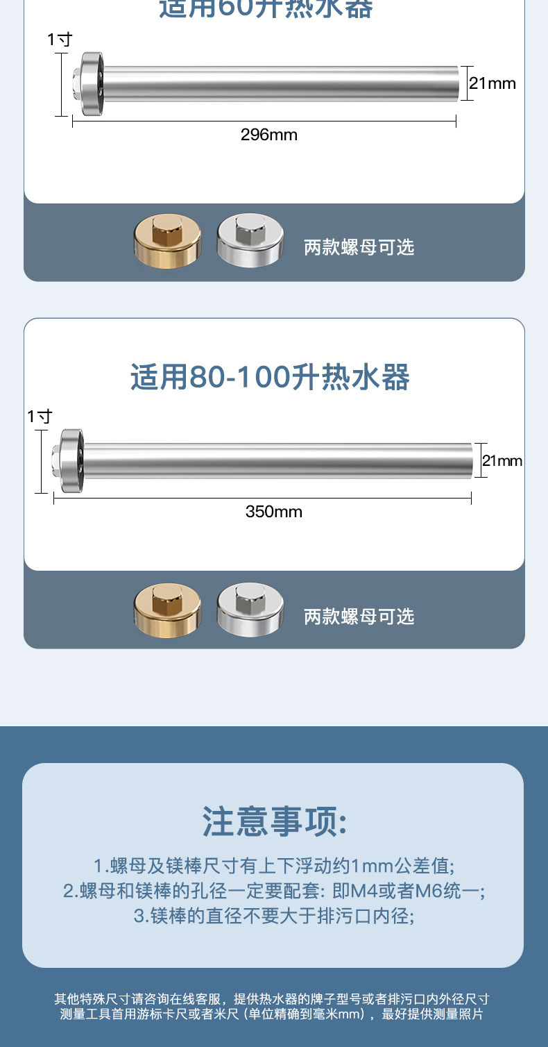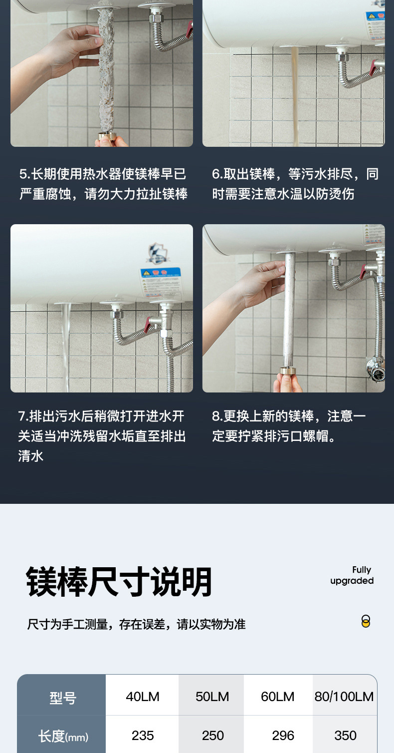 • [80-100L Midea 온수기 전용] 마그네슘 막대 길이 350mm/너트 제외