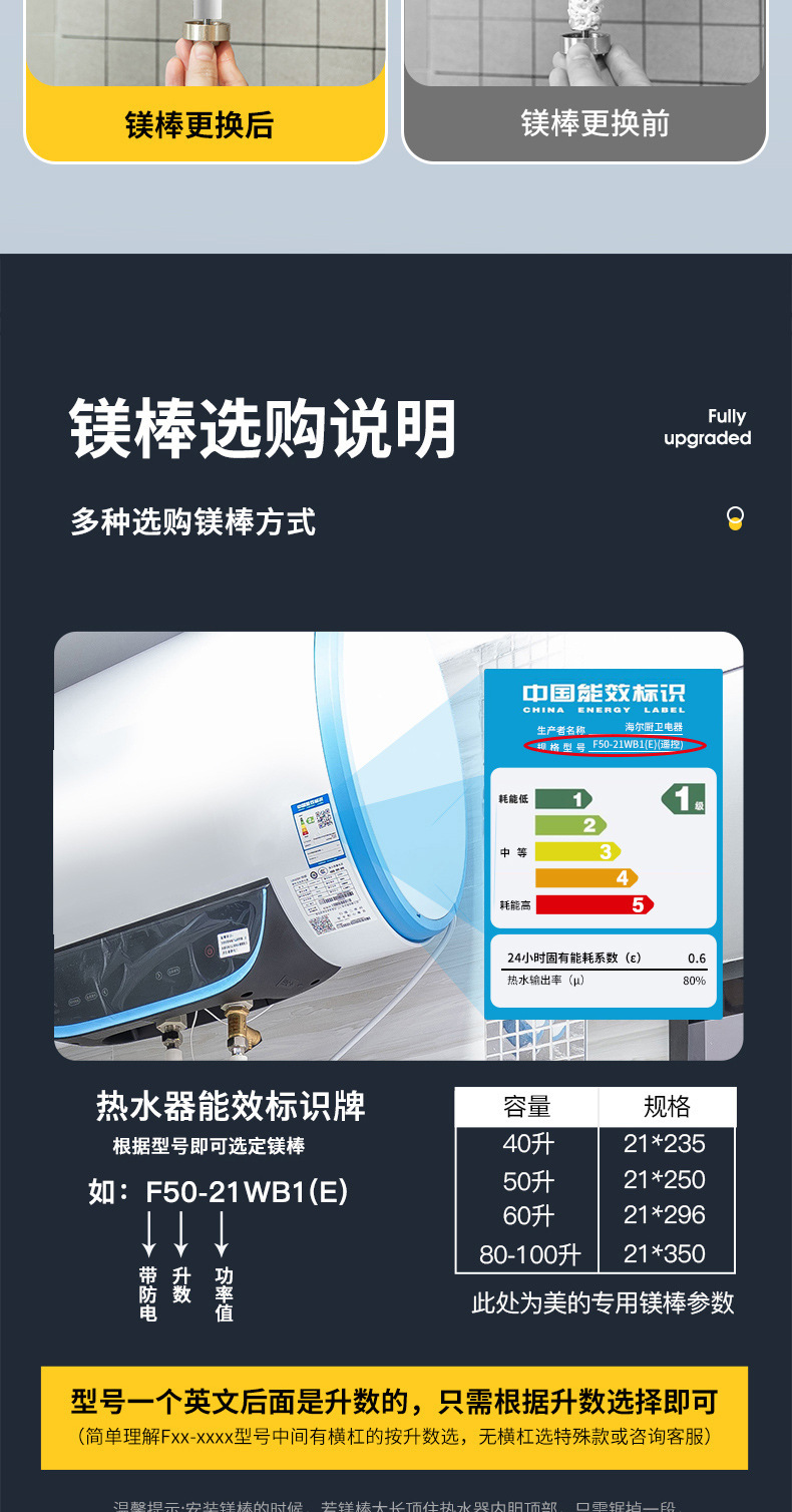 Midea 전기 온수기 특수 마그네슘 막대 40/50/60l/80L 하수 출구 규모 제거 양로드 가열 액세서리스토어 가기