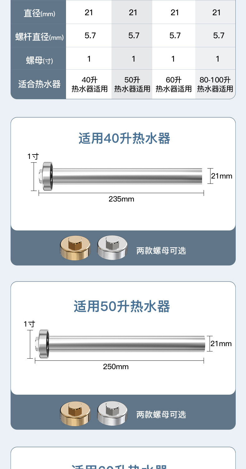 • [80-100L Midea 온수기 전용] 전기도금 너트 [실용적이고 적극 권장] 길이 350