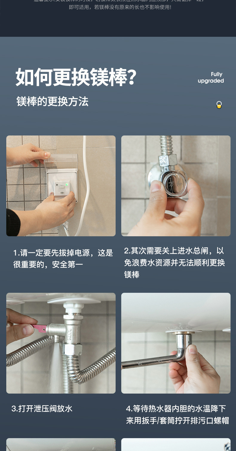 Midea 전기 온수기 특수 마그네슘 막대 40/50/60l/80L 하수 출구 규모 제거 양로드 가열 액세서리
