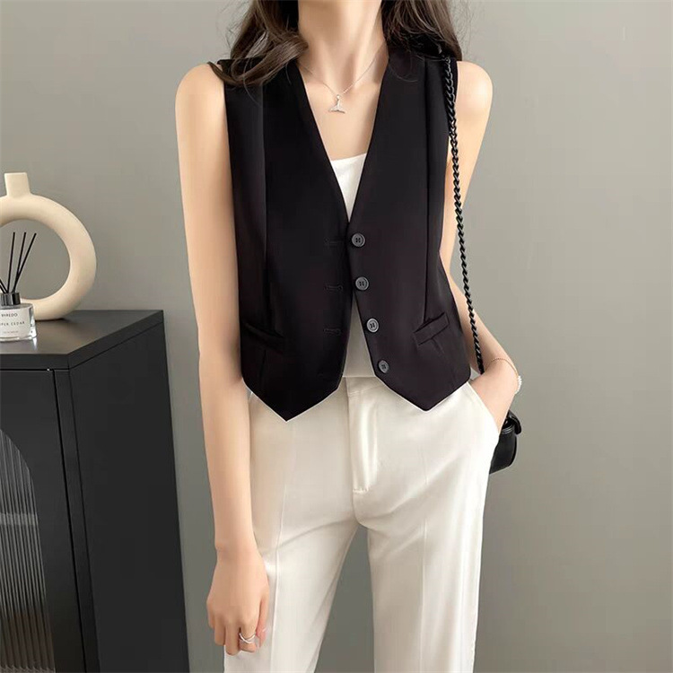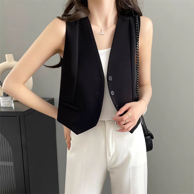 2025 프랑스 조끼 여성 여름 새로운 유행 통근 쌓인 내복 작은 외모 세트 조끼