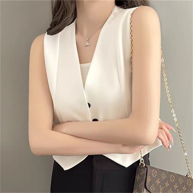2025 프랑스 조끼 여성 여름 새로운 유행 통근 쌓인 내복 작은 외모 세트 조끼스토어 가기