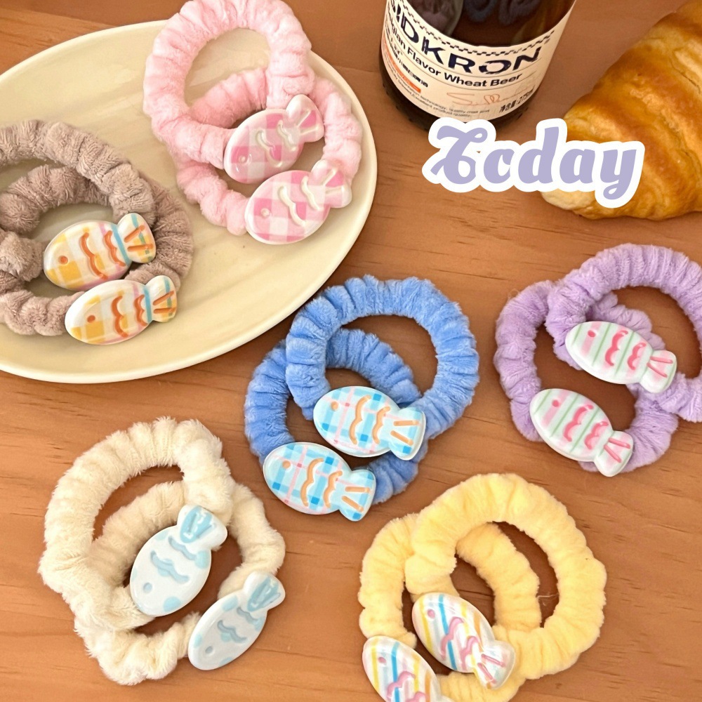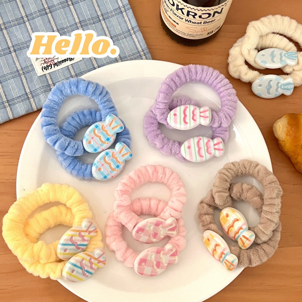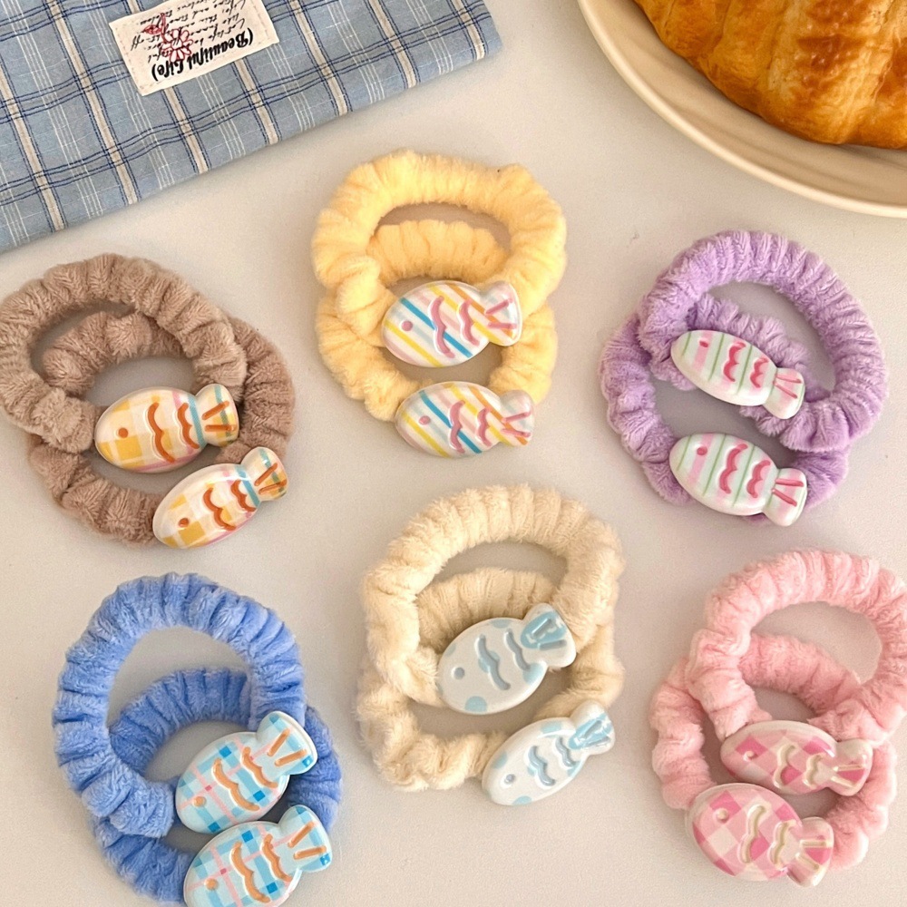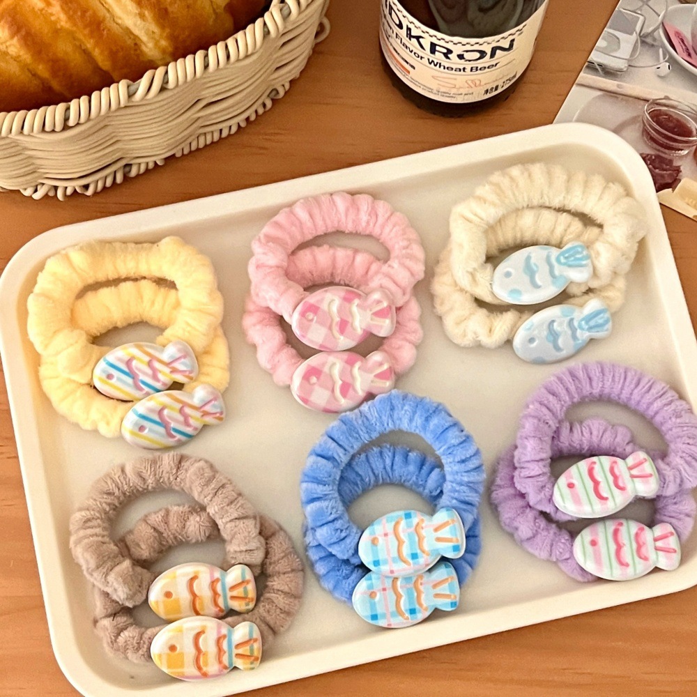 새로운 봉제 작은 물고기 머리 반지 귀여운 소녀 헤어 로프 컬러 크림 작은 물고기 고무 밴드 달콤한 헤어 액세서리 도매