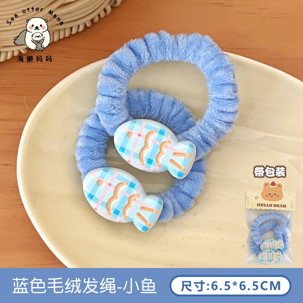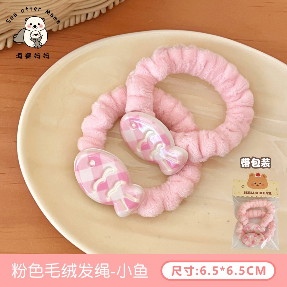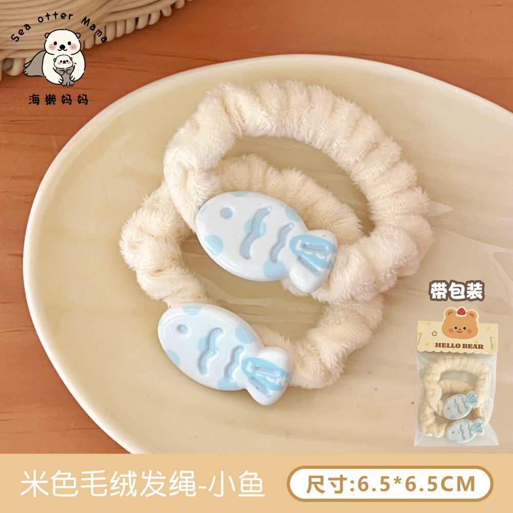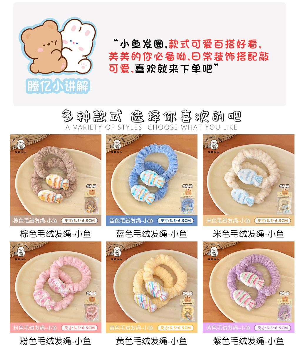 새로운 봉제 작은 물고기 머리 반지 귀여운 소녀 헤어 로프 컬러 크림 작은 물고기 고무 밴드 달콤한 헤어 액세서리 도매스토어 가기