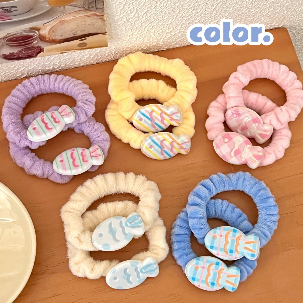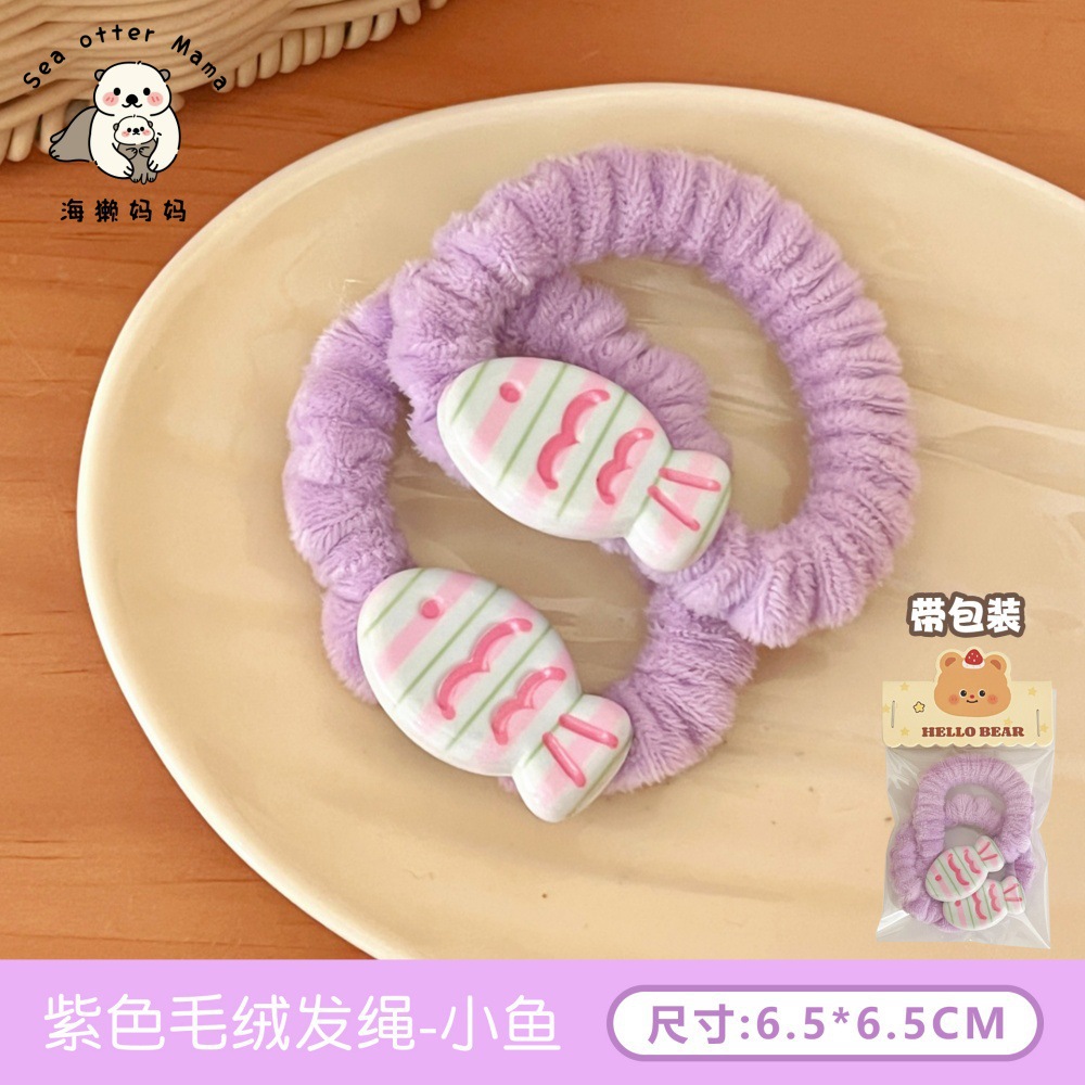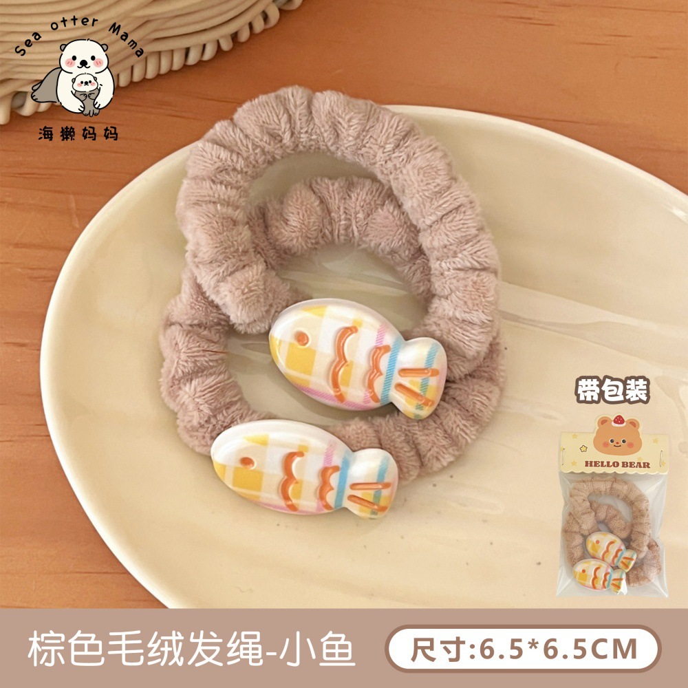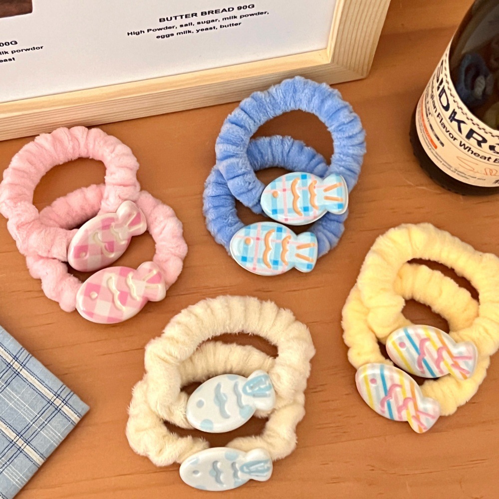 새로운 봉제 작은 물고기 머리 반지 귀여운 소녀 헤어 로프 컬러 크림 작은 물고기 고무 밴드 달콤한 헤어 액세서리 도매스토어 가기