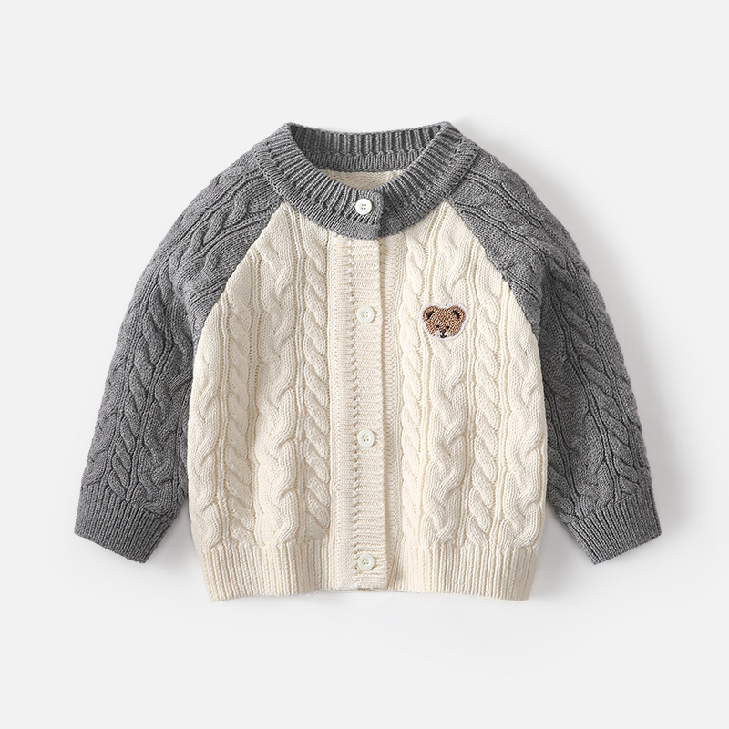 소년 스웨터 한국식 곰 라글란 소매 카디건 봄과 가을 어린이 둥근 목 니트 코트 따뜻한 클래스 A 스웨터스토어 가기