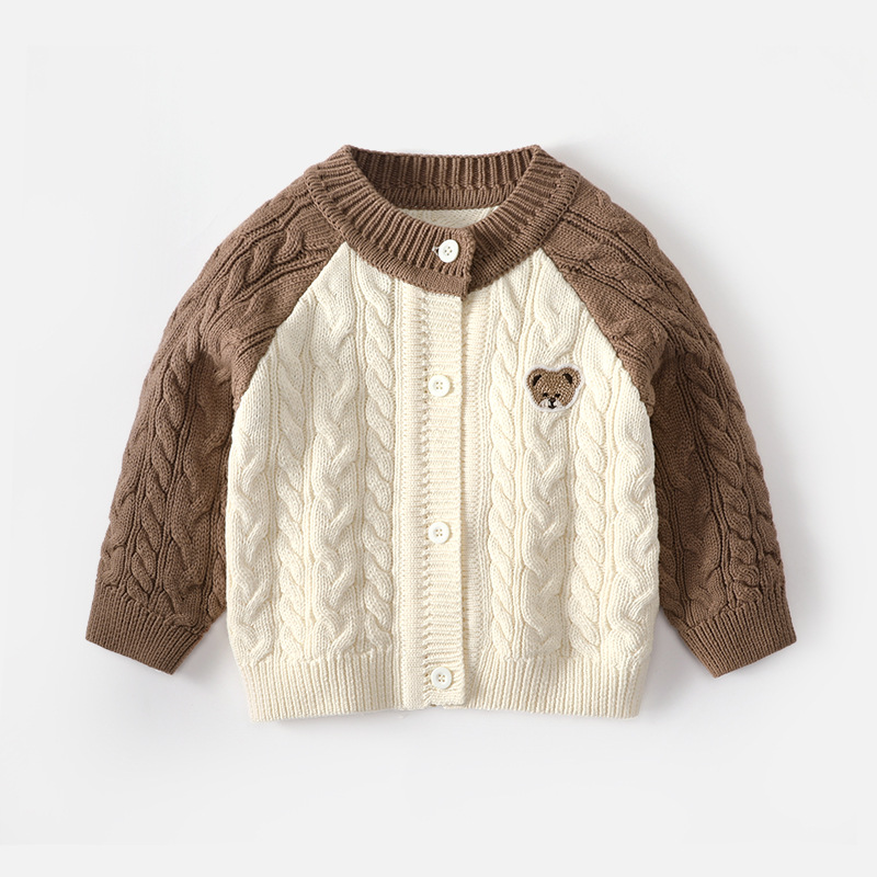 소년 스웨터 한국식 곰 라글란 소매 카디건 봄과 가을 어린이 둥근 목 니트 코트 따뜻한 클래스 A 스웨터