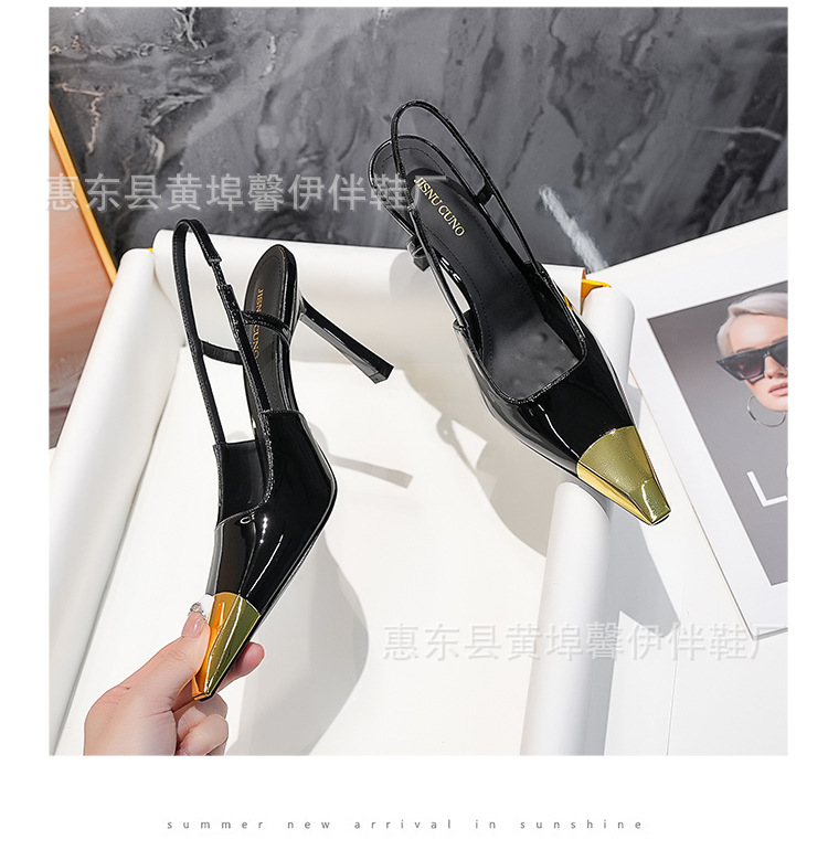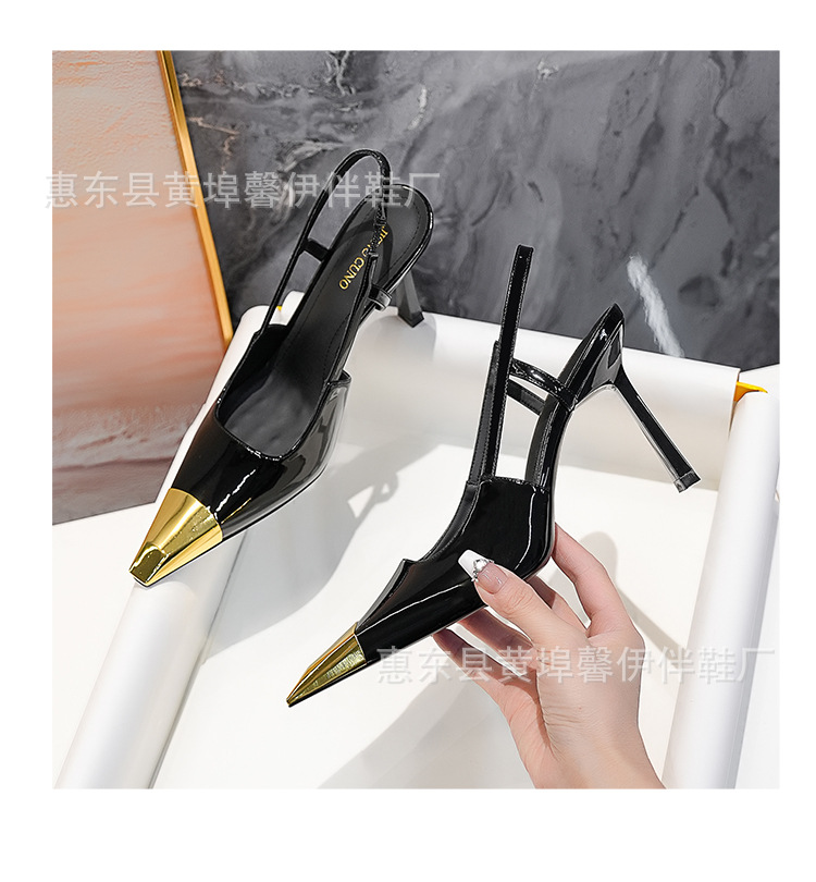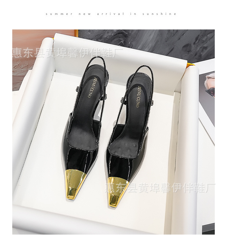 2025 새로운 하이힐 신발 섹시한 블랙 특허 가죽 포플러 숲 같은 스타일 금속 스퀘어 토 스틸레토 힐 로우 입 싱글 레이어 신발스토어 가기