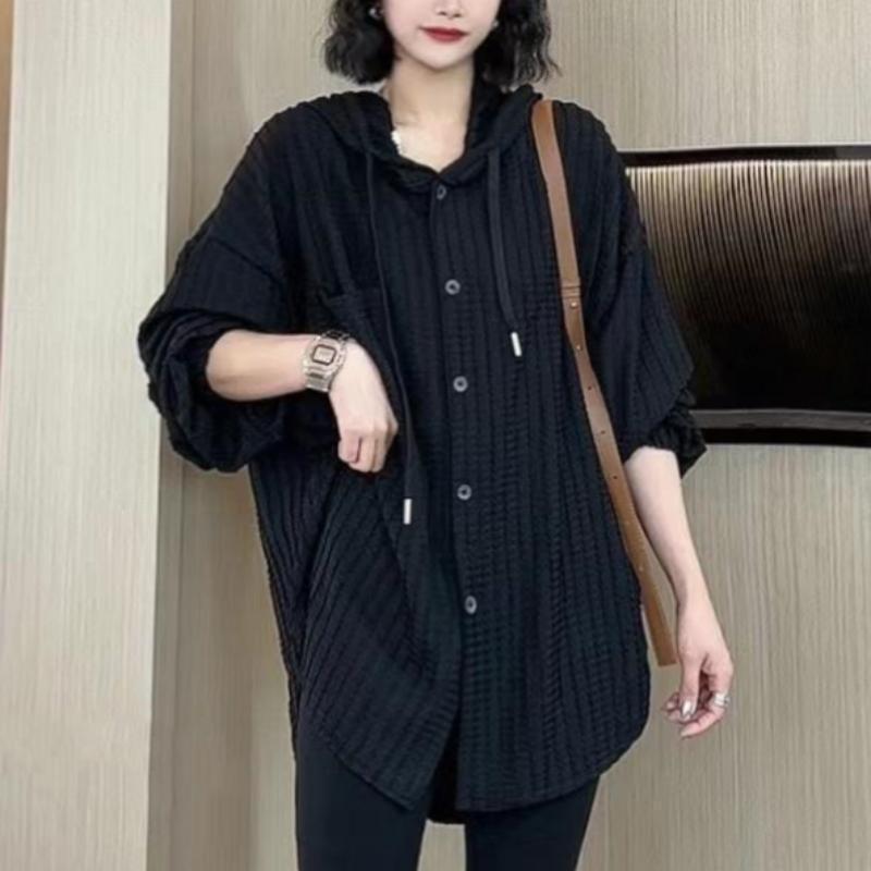 오버 사이즈 300 진 핑크 긴 소매 선 스크린 여성용 통통한 조커 미디어와 긴 느슨한 카디건 모자 얇은 코트스토어 가기