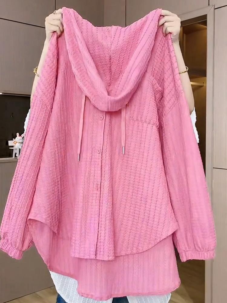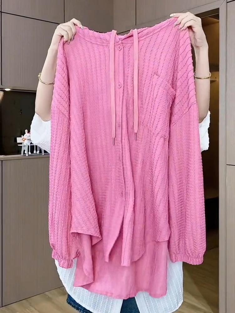 오버 사이즈 300 진 핑크 긴 소매 선 스크린 여성용 통통한 조커 미디어와 긴 느슨한 카디건 모자 얇은 코트