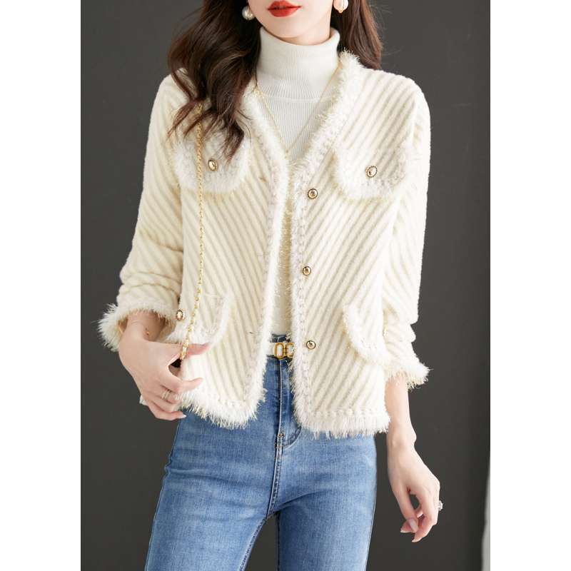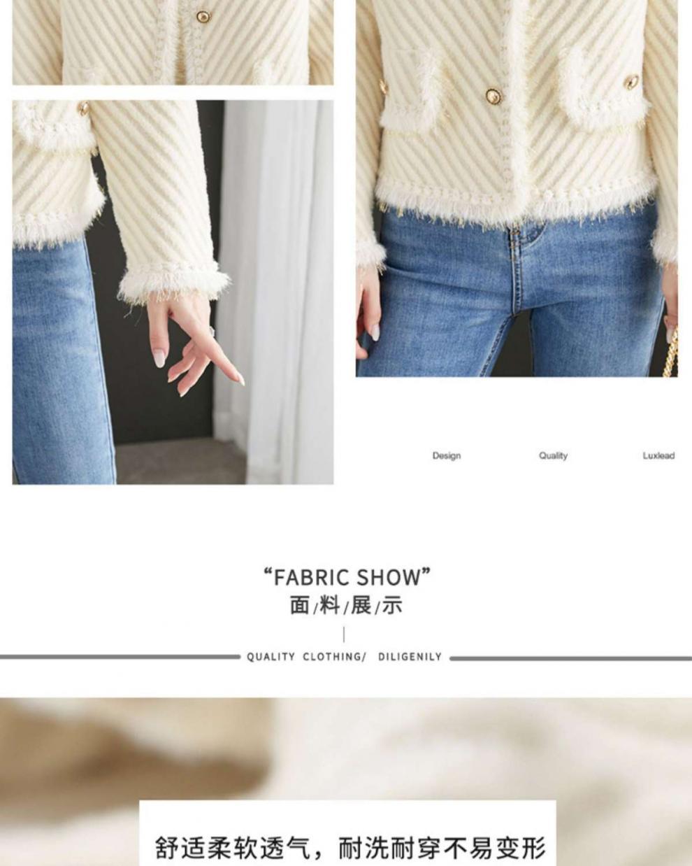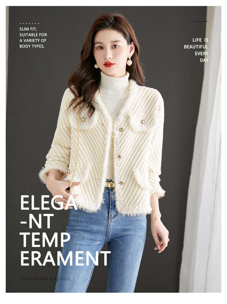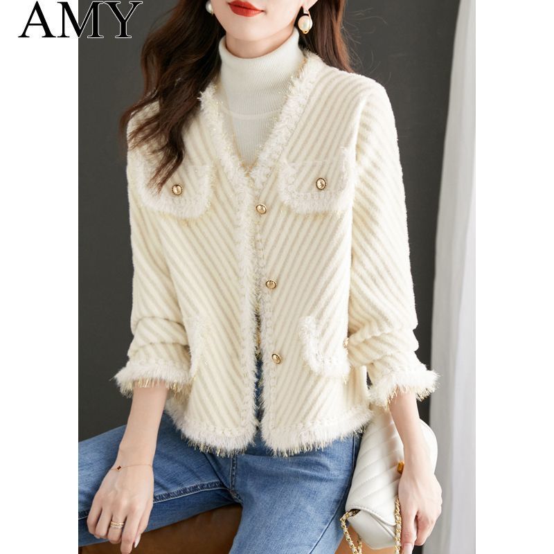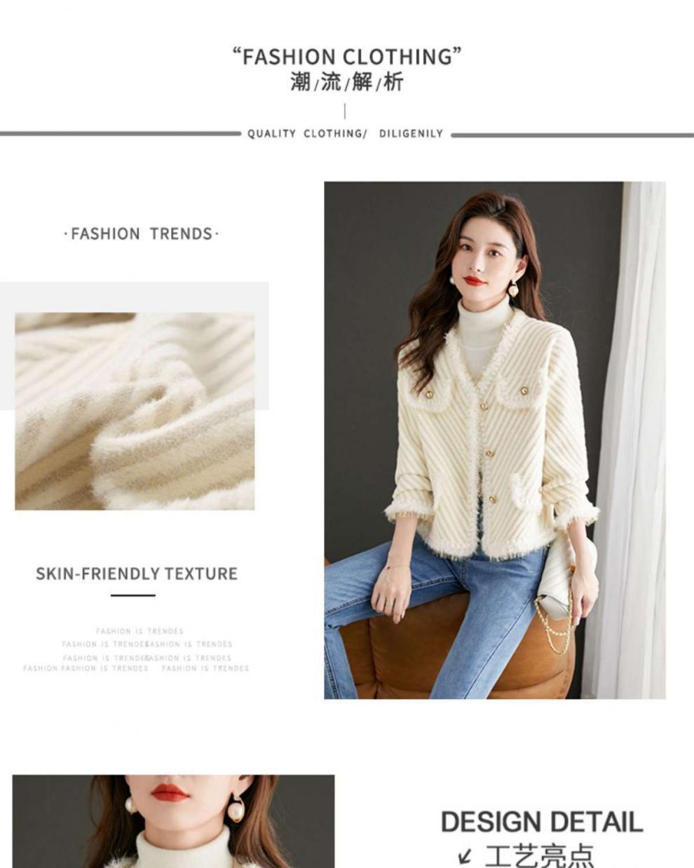 2025 가을 새로운 세련된 샤넬 스타일 V-넥 탑 우아한 패셔너블 프린팅 디자인 센스 아우터 쇼트 코트스토어 가기