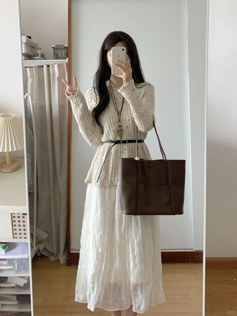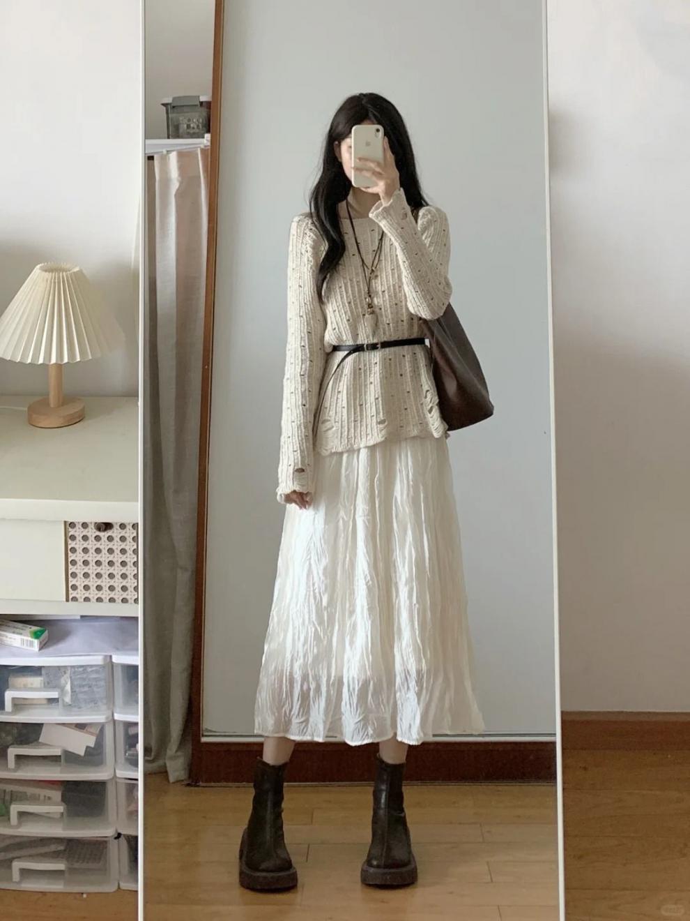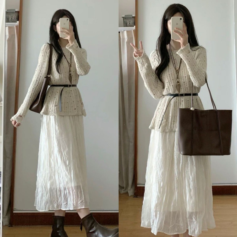 • 중공 스웨터 + 스커트 [벨트 포함]